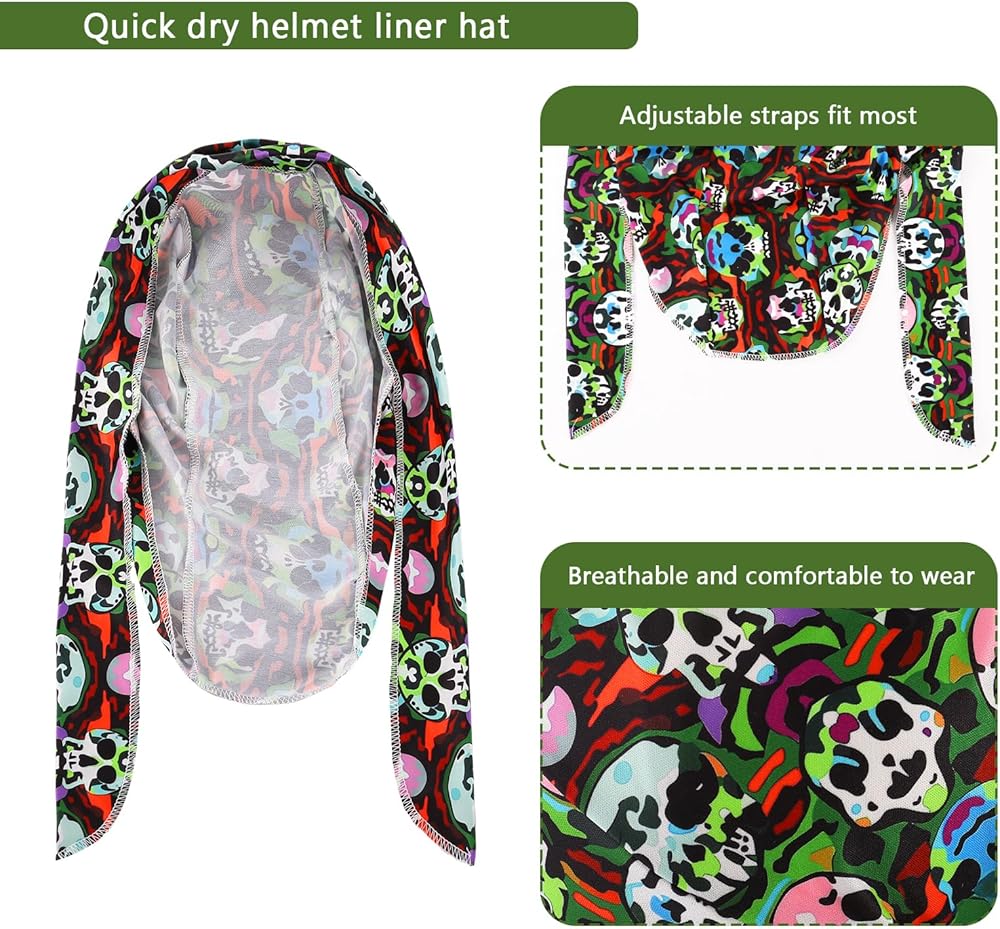 Breathable & Quick Drying: Bold candy skeleton print skull caps for men under helmet liners made of spandex fabric, this do rags headband is highly breathable, elastic, and durable. machine washable, soft and comfortable to wear, and keeps your head dry and cool