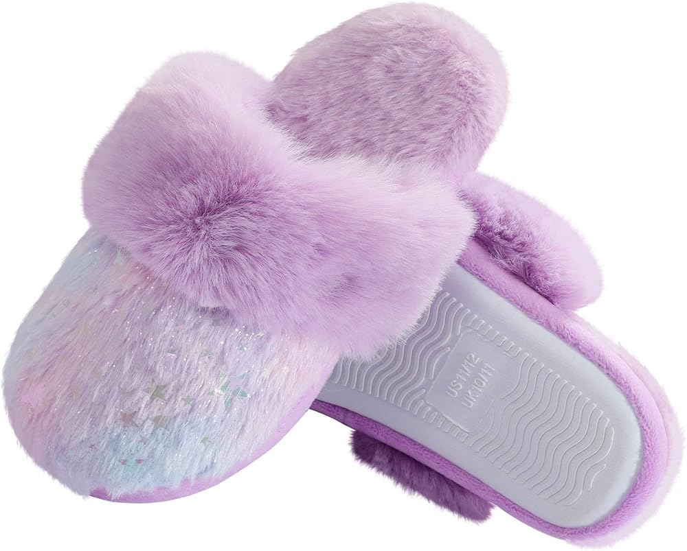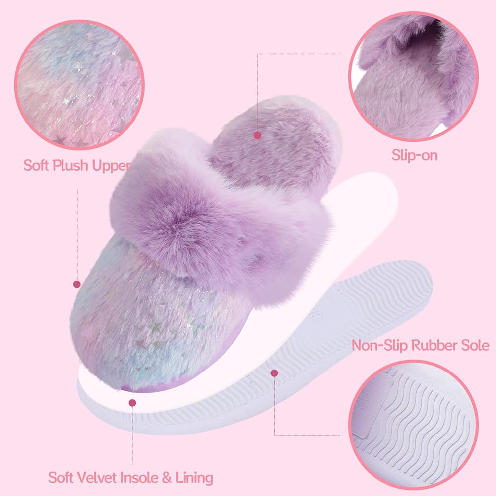 【Girls Fuzzy Slippers】- Girls bedroom slippers with super soft plush fluffy lining and flexible soles, keep girls' little toes warm especially on cold days! Mermaid sequins on this home house shoes make this a perfect gift for little girls as they are super eyecatching, lovely and sparkly!