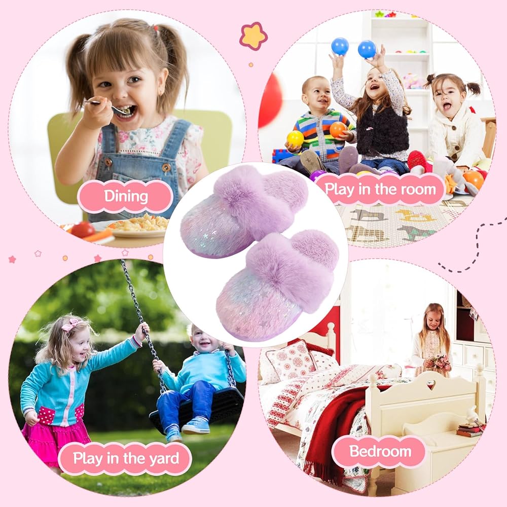 【Complete Comfort】- These slippers are crafted with a soft faux fur lining for ultimate warmth and comfort. Your little girl will rave about the plush cozy interior when lounging around in these slippers. The upper is made of a microsuede material that is soft to the touch, making her relaxation experience even more comfortable.