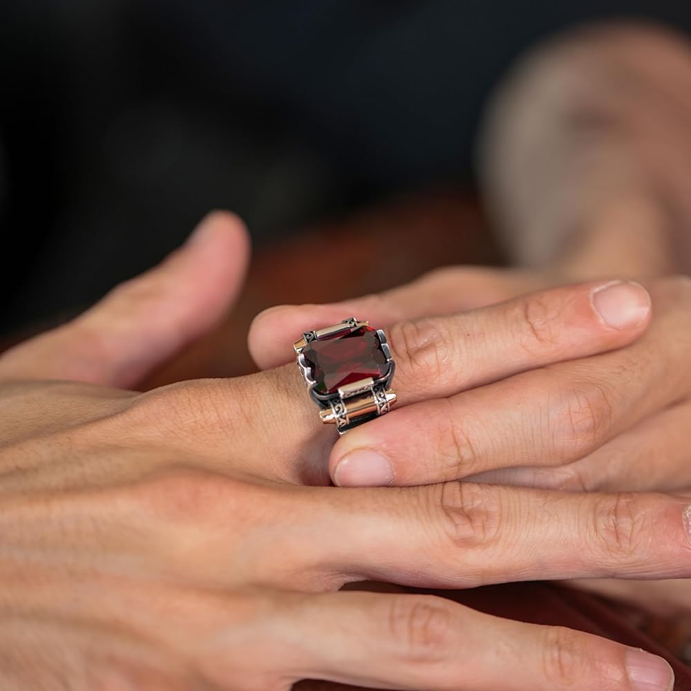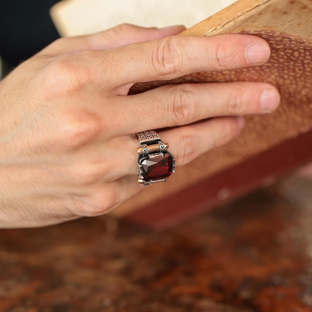 - Vintage Ottoman Style: Featuring a faceted simulated red ruby stone, this ring boasts an authentic vintage Turkish Ottoman design.