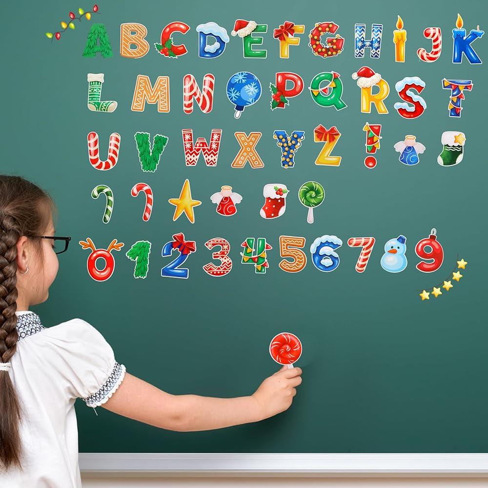 This alphabet letter board decor contains letters, numbers, symbols, which will bring creativity to your learning space with bright colors, fun patterns, and nice chalkboard designs.