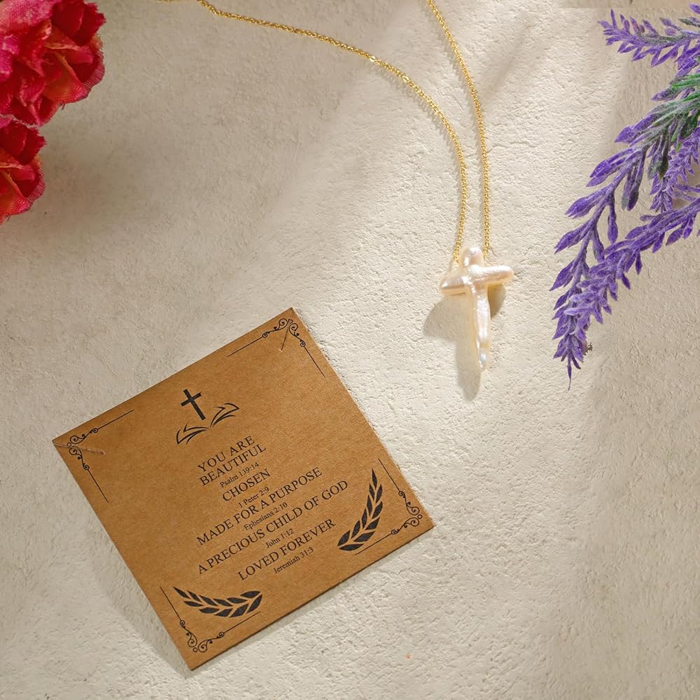 Jewelry pearl necklace with a Christian themed card. Our jewelry pearl necklace comes in elegant packaging that complements its beauty. You will receive the baroque pearl necklace not only in sophisticated packaging but also with a Christian-themed card, making it a perfect gift for your loved ones.