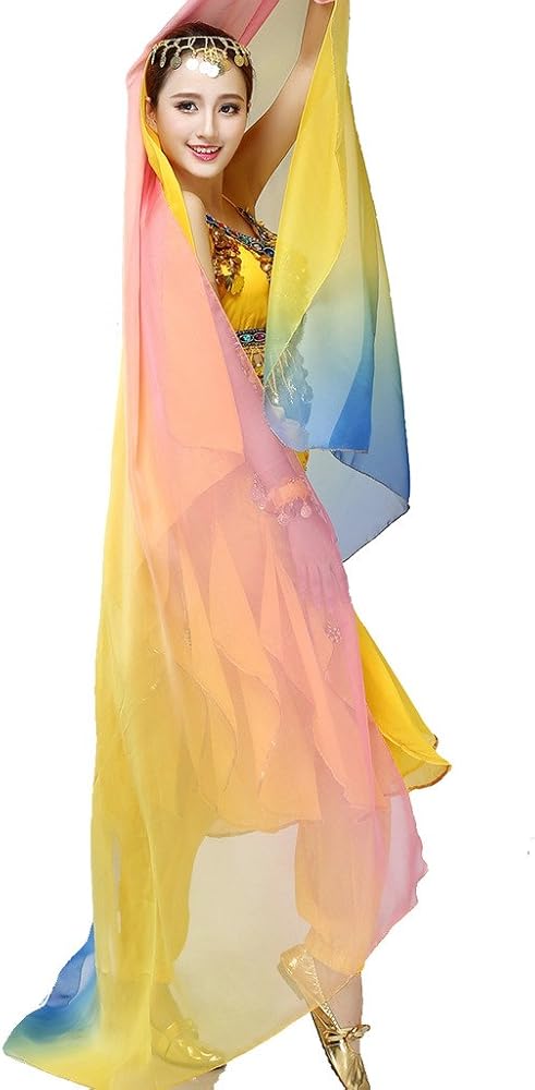 ZLTdream Women's Belly Dance Gradual Colorful Chiffon Scarf and Veil 2.5*1.2M
