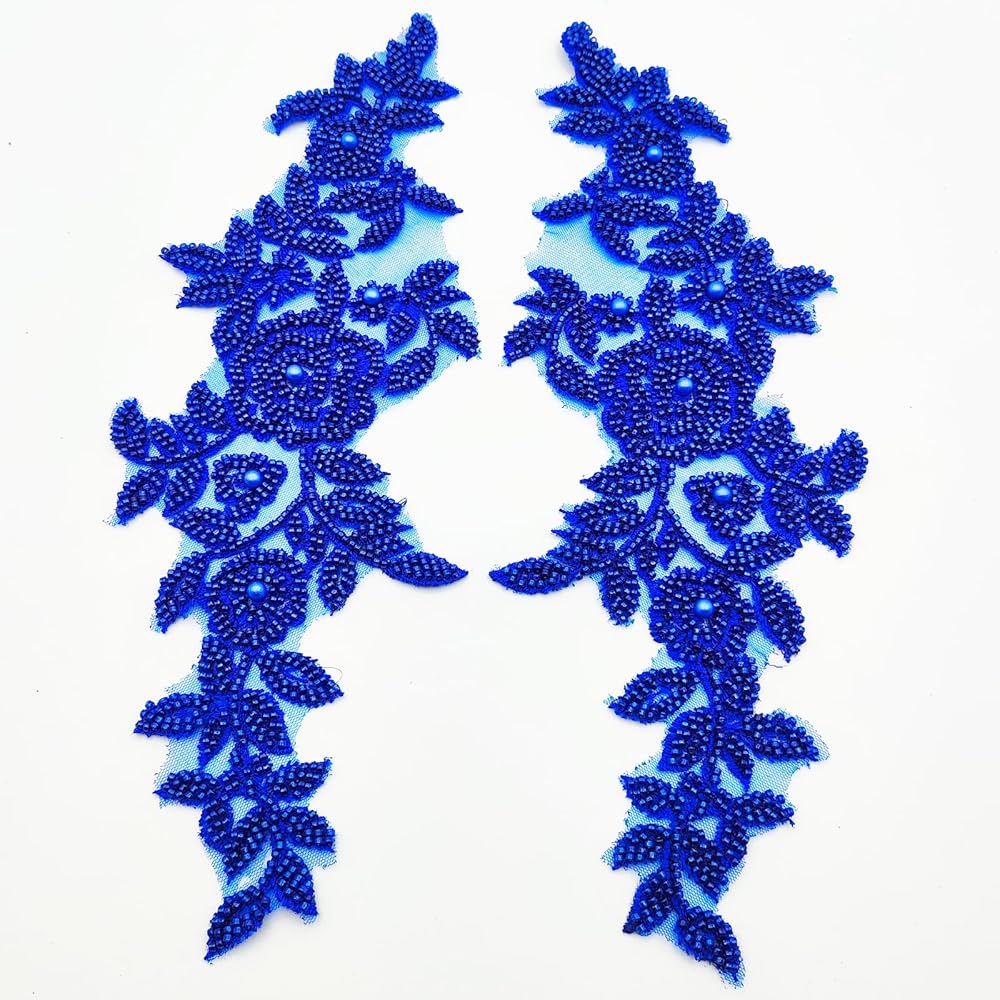 YOOGCORETT 1 Pair Gold 3D Lace Applique, Sew on Flower Bead Fabric Patches Embroidered Trim Applique for Wedding Dress Decor DIY Sewing Clothing Applique 12.6" x 4.3"Inch