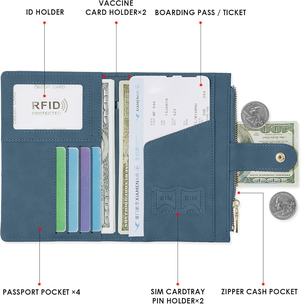 Multi-functional Wallet Slim Travel Wallet Change Purse with Vaccine Card Slot