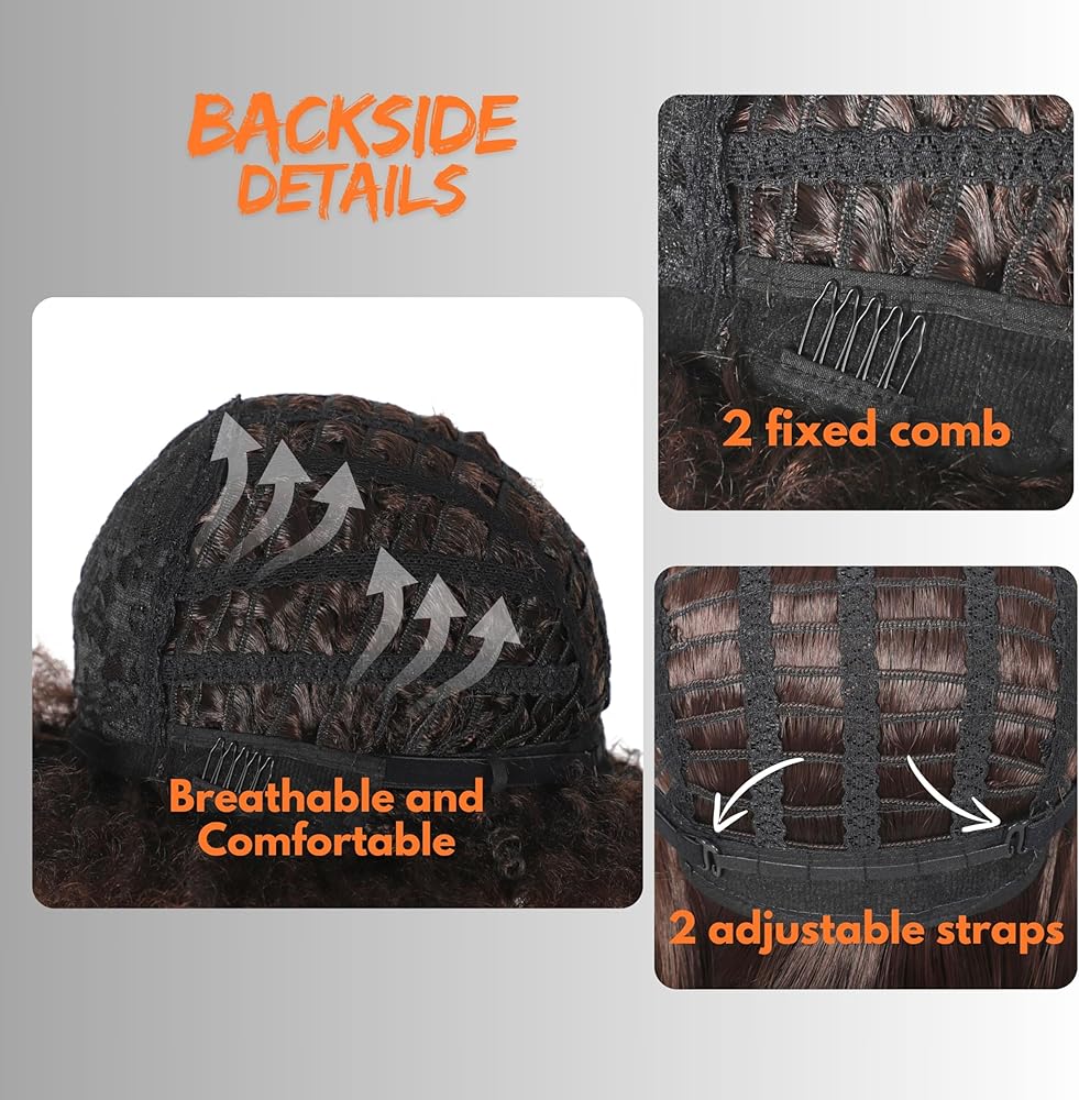 Premium Material: This stylish Afro wig is made of high quality heat resistant synthetic fiber which is soft, kinky and dense. It is comfortable and breathable to wear
