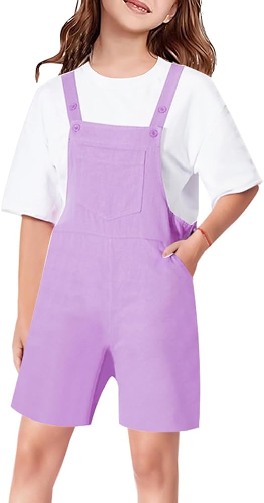 Girls Overalls Sleeveless Adjustable Jumpsuits Kids Casual Loose Romper Cute Long Pants with Pockets 4-14 Years