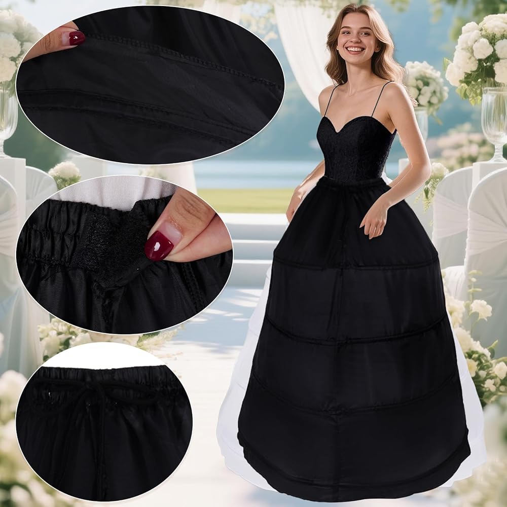 Keeping Dress Full and Beautiful This Full Shape 4 hoop Petticoat is Single Layer with 4 Strong Hoops Make Full Shape, Which help keeping your beautiful ball gown wedding dress more full and in good shape. Most A-line and ball gown wedding dresses need the hoop skirt underneath to keep its shape! You will be the most Dazzling person in the crowd when you dress on.