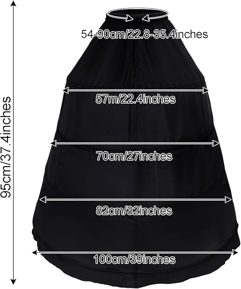Adjustable Waistline:Petticoats for Women Waist Size:24inch/60cm--39inch/100cm(adjustable)Elastic waist 60cm, stretching up to 100cm, Length : 37inch/95cm petticoat suitable for US size 2 to 16 dresses