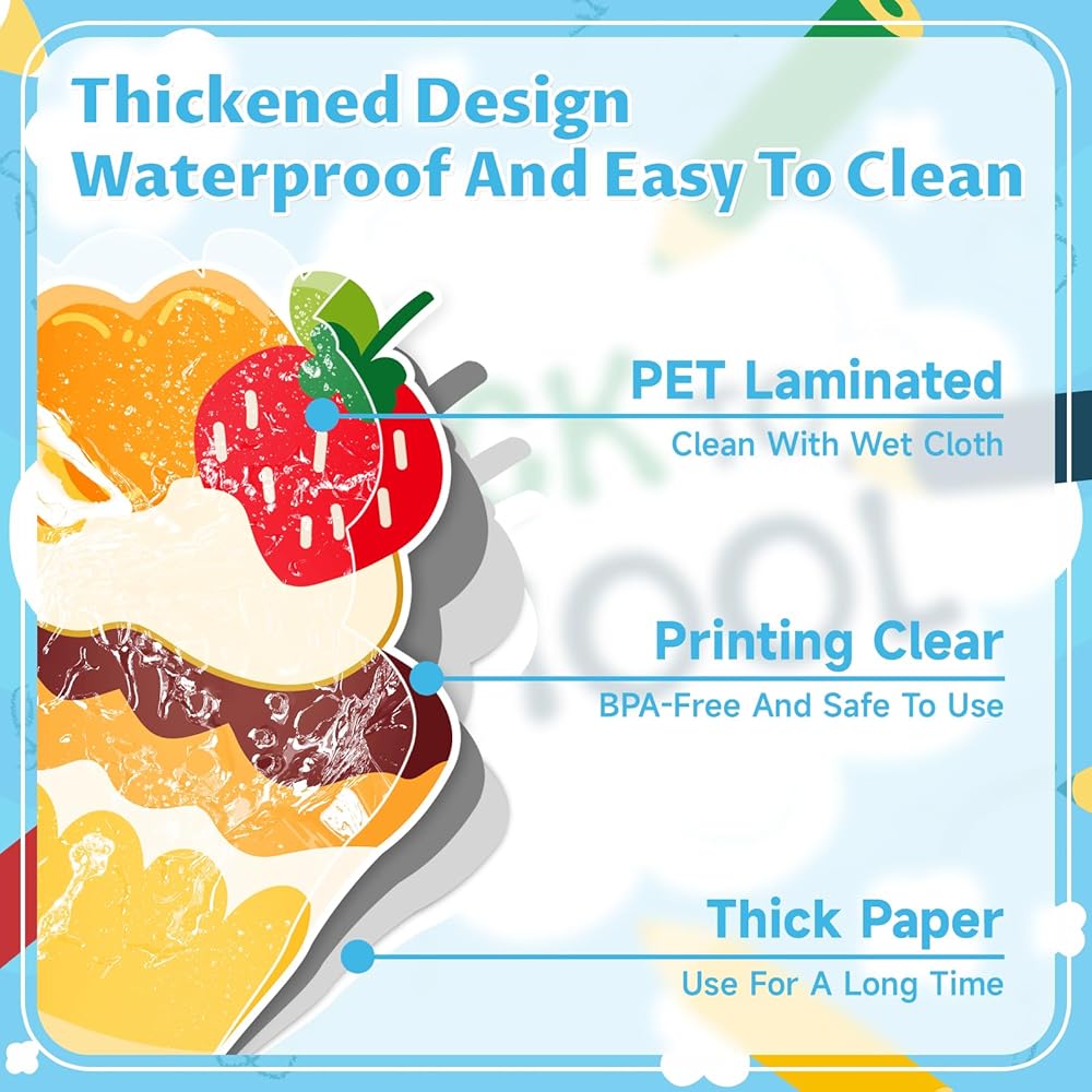【Awesome Design】Create an enchanting vibe for your Back to School event or classroom decorations with our exquisitely crafted paper cutouts. These delightful designs feature cupcakes, hot air balloons, and vegetables, all rendered in a vibrant palette that will surely catch the eye and sweeten any setting.