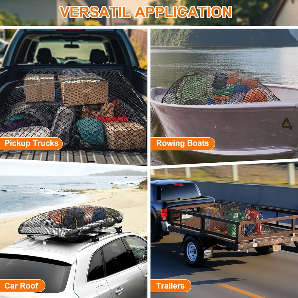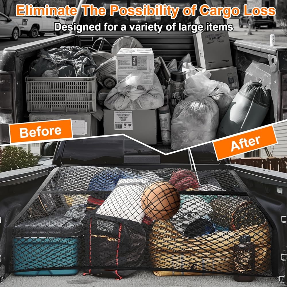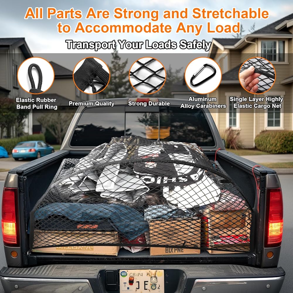 🚗【Ideal Gift】Designed for practicality and presented in beautiful packaging, this truck cargo net makes an excellent gift choice. Highly elastic cargo net for truck for adventurers traveling camping and is a must-have addition to birthday, holiday, or Christmas gifts for dad, spouse, and friends traveling outdoors.