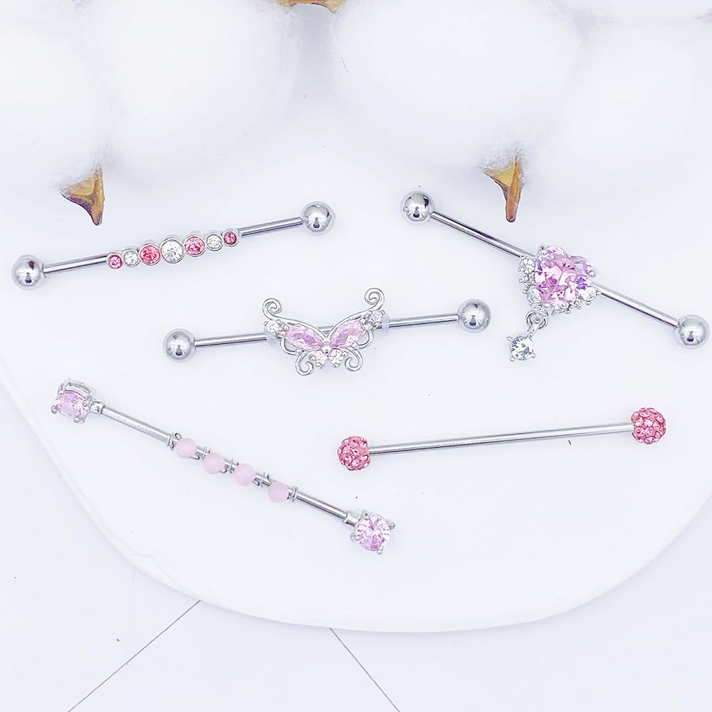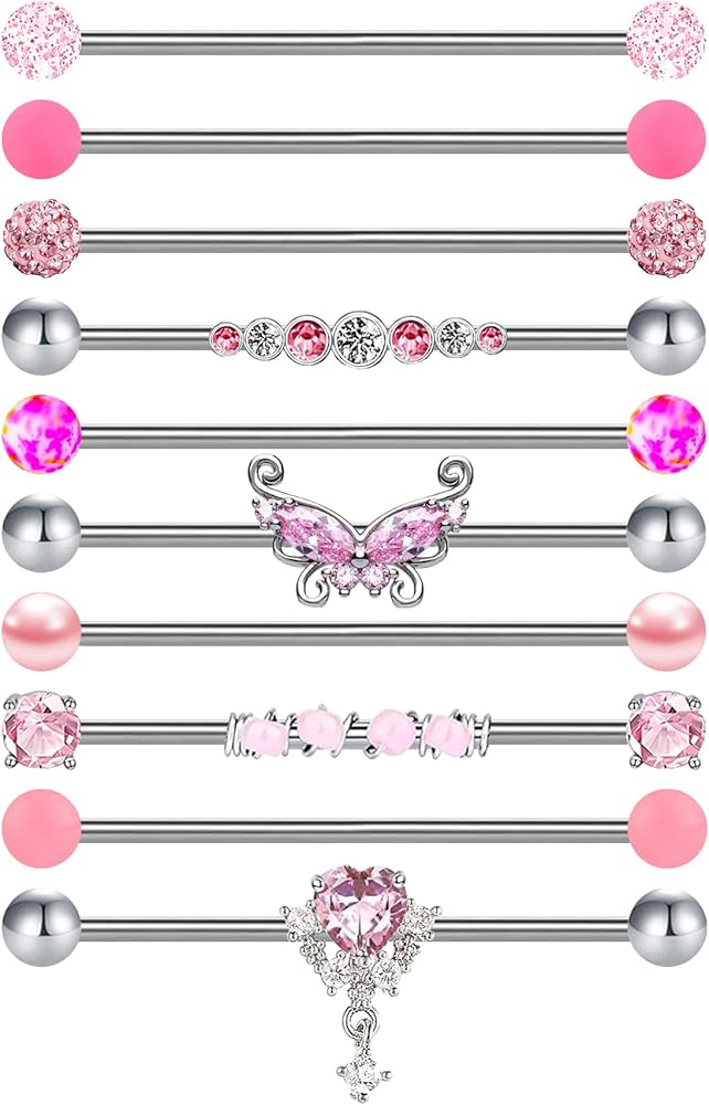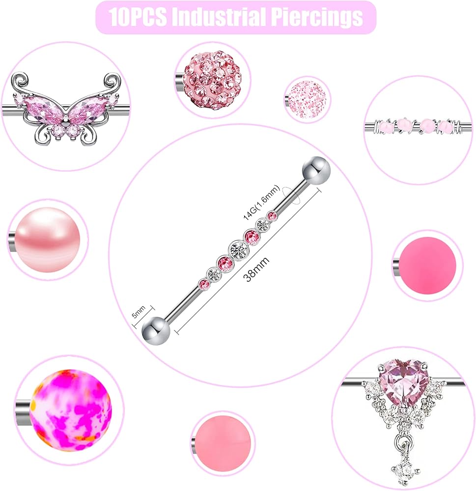 Package: 10pcs different style pink industrial piercings come in one set, mix styles give you mutiply wearring outfit