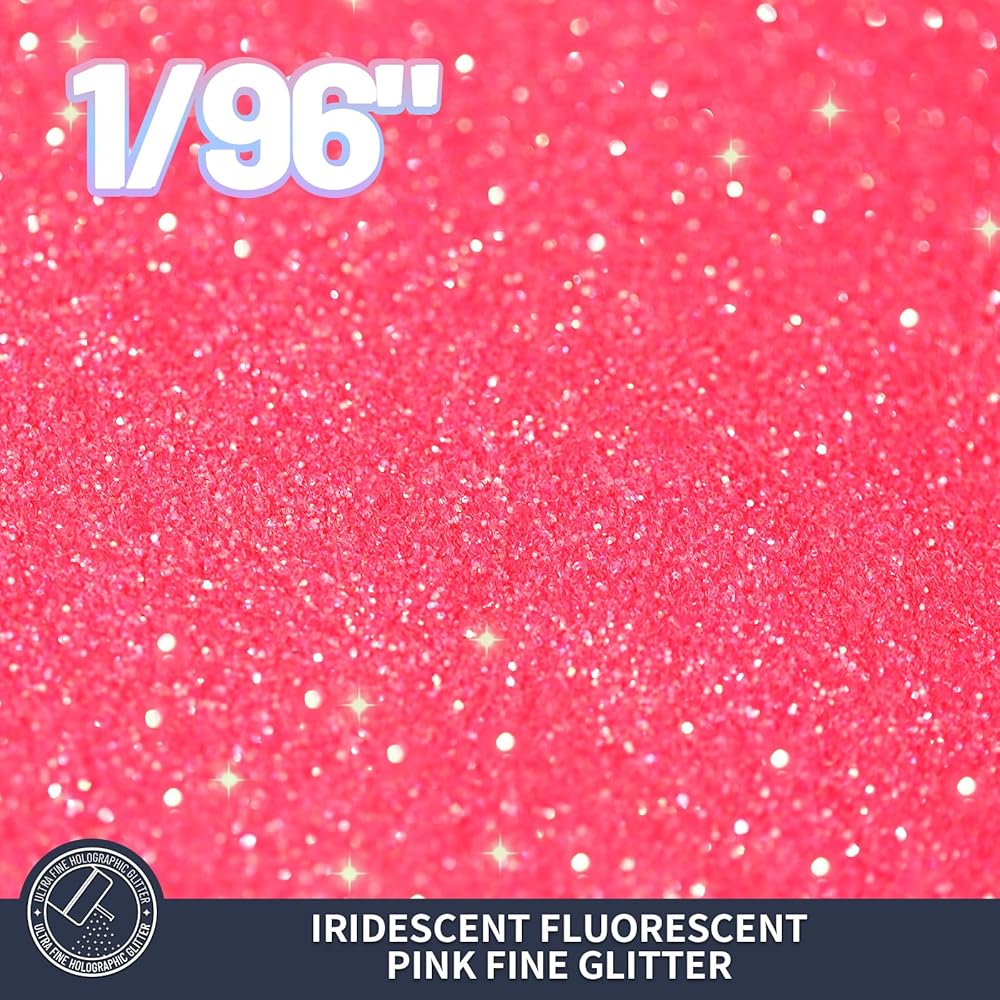 Bulk Iridescent Pink Glitter: Iridescent hot pink glitter, along with secondary rainbow color, shines stunningly under light; 150/5.29oz, large amount, can support abundant DIY projects.