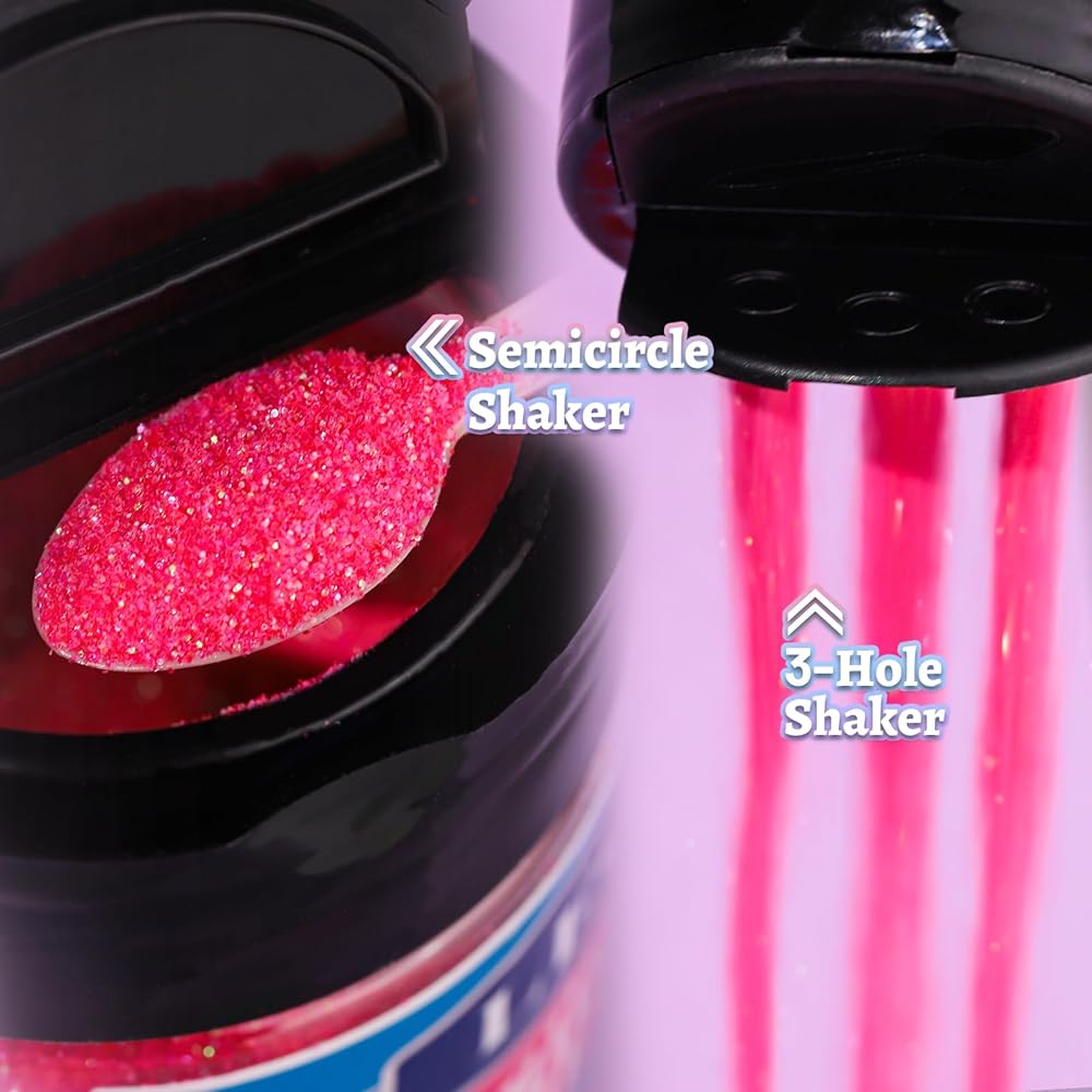 Convenient Shaker Jar: Glitter come in an easy-pour shaker Jar, with two kinds of shakers available on lid, assist to pour evenly, create smooth sparkling glitter surface while reducing waste.