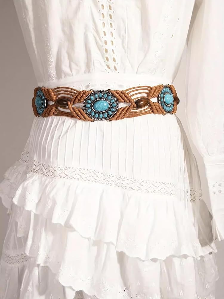 WHIPPY Boho Braid Waist Belt for Women Turquoise Wax Rope Hand-Woven Belt with Tassel Ethnic Western Women Belt for Dress. The Boho braid waist belt for women is a meticulously crafted accessory that combines ethnic charm with practicality, making it a versatile and stylish addition to any wardrobe. Stunning vintage Western belt with hand-woven turquoise wax rope design and tassel details. Adjustable belt length (total length: 185cm/73", belt length: 100cm/39") to fit waist sizes from 27" to 54". Crafted from durable polymeric fiber, alloy, turquoise, and resin beads for long-lasting quality. Versatile accessory suitable for various occasions, available in four colors: Black, Brown, Beige, and Coffee. Adds an ethnic and elegant touch to any outfit, perfect for summer dresses and casual ensembles.