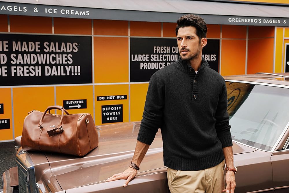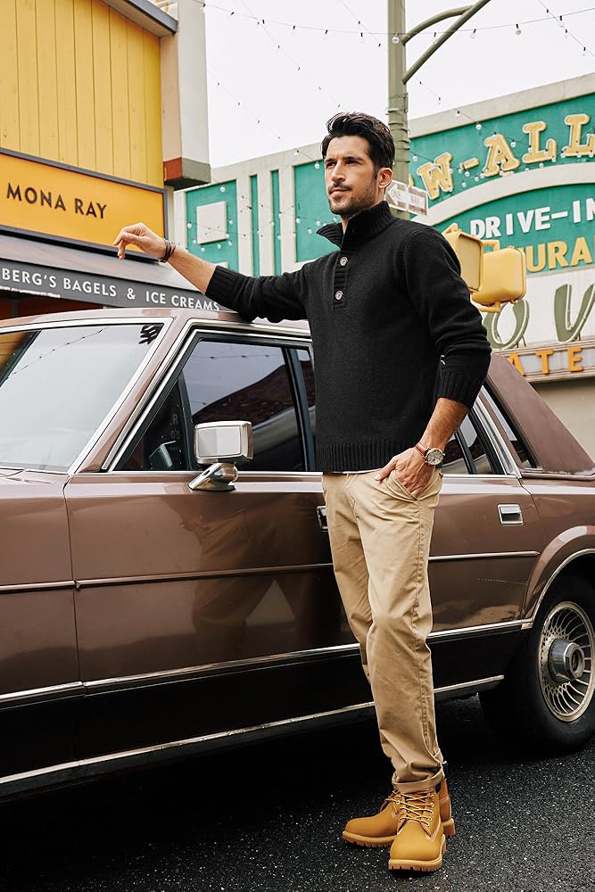 Material: The quarter-button sweater is featured with wool blend fabric, which provides you a surprisingly warm and comfortable wearing experience in chill days