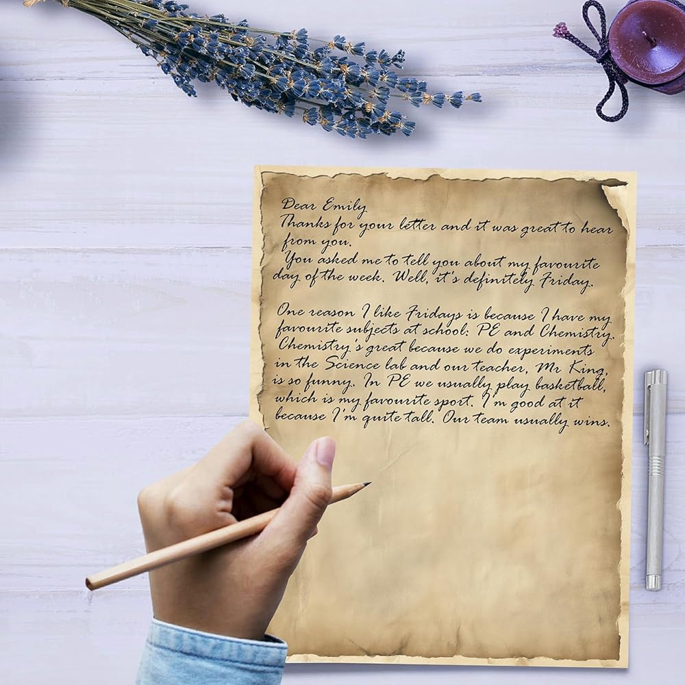 MULTIPURPOSE - These Beautiful Rustic Old Looking Writing Paper is one side Plain & One Side Lined so it can easily be Customized with Pens, Markers, Stamps,, Allowing you to Create Unique and Personalized Messages or Invitations.