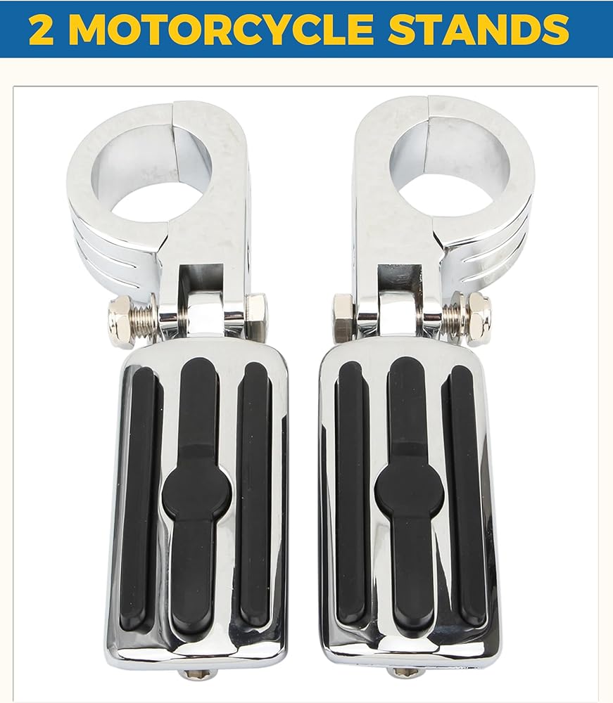 -The mounting clamps firmly grasp the engine guard, and the locking design fixes the foot pegs at the desired angle
