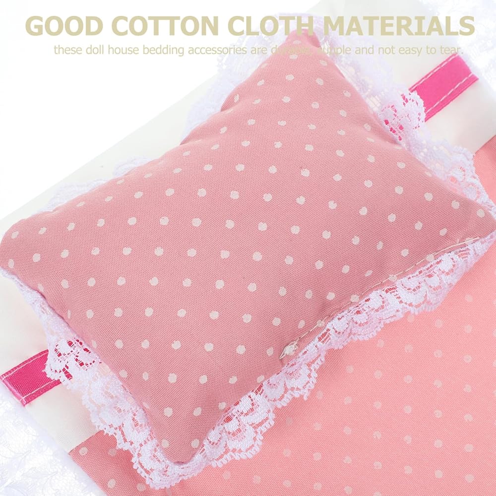 Doll Bedding Dollhouse Bedding Set with Comforter Pillows Miniature Bedsheet Mini House Bedding Realistic Bedroom Accessories Dollhouse Sheets Blankets