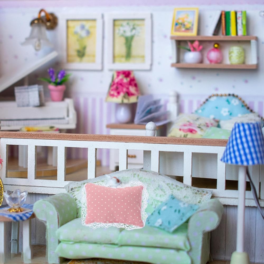 【doll house bedroom accessories】Doll House Bed Pillows Decor Miniature Bedsheet Mini House Bedding Mini Bedding Miniature Pillows Miniature Bedding Kit Cotton Supplies Shaker The Miniature Bedding Set Is Suitable for Placed in The Bedroom, to Set The Bedroom Layout.