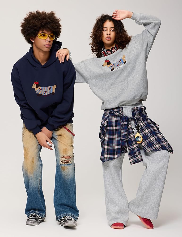 - Design: Hooded, long sleeve, embroidery graphic, cute dog