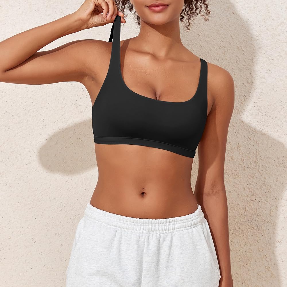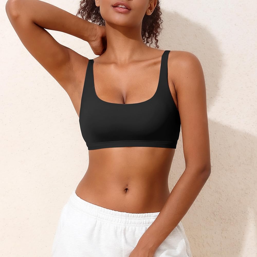 No Padding No Underwire Scoop Neck Bra: Embrace your natural shape with our unpadded and wire-free design that offers light support while maintaining a soft and breathable feel against your skin, comfy wireless bras for women
