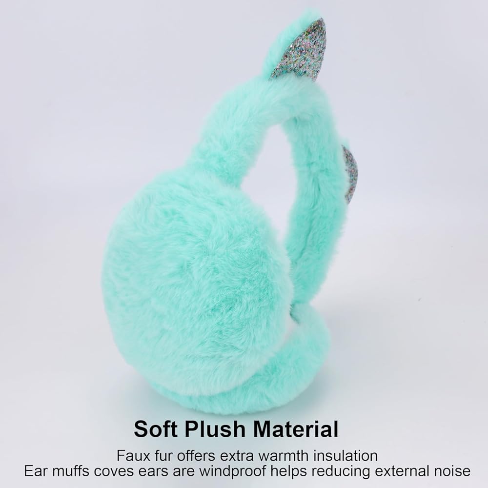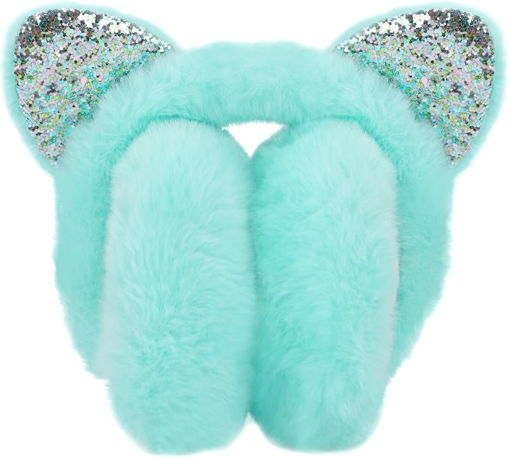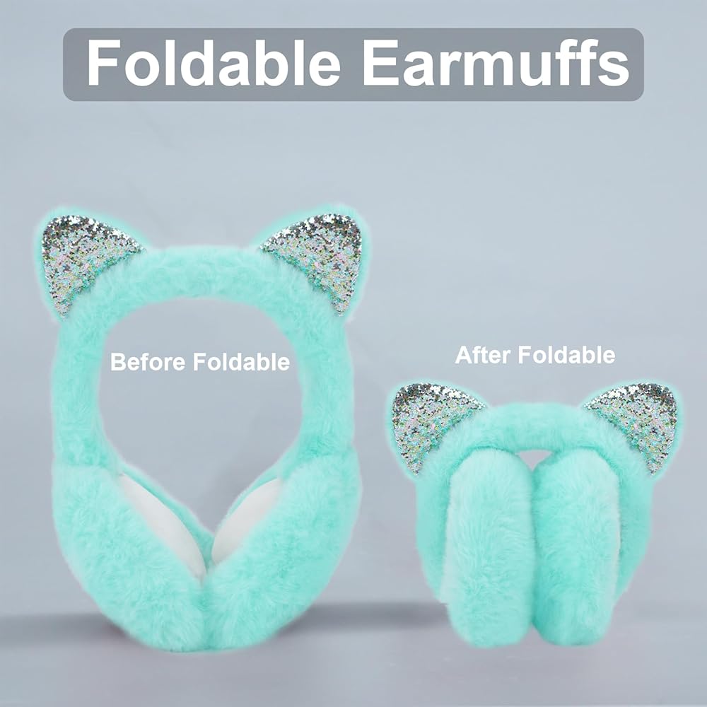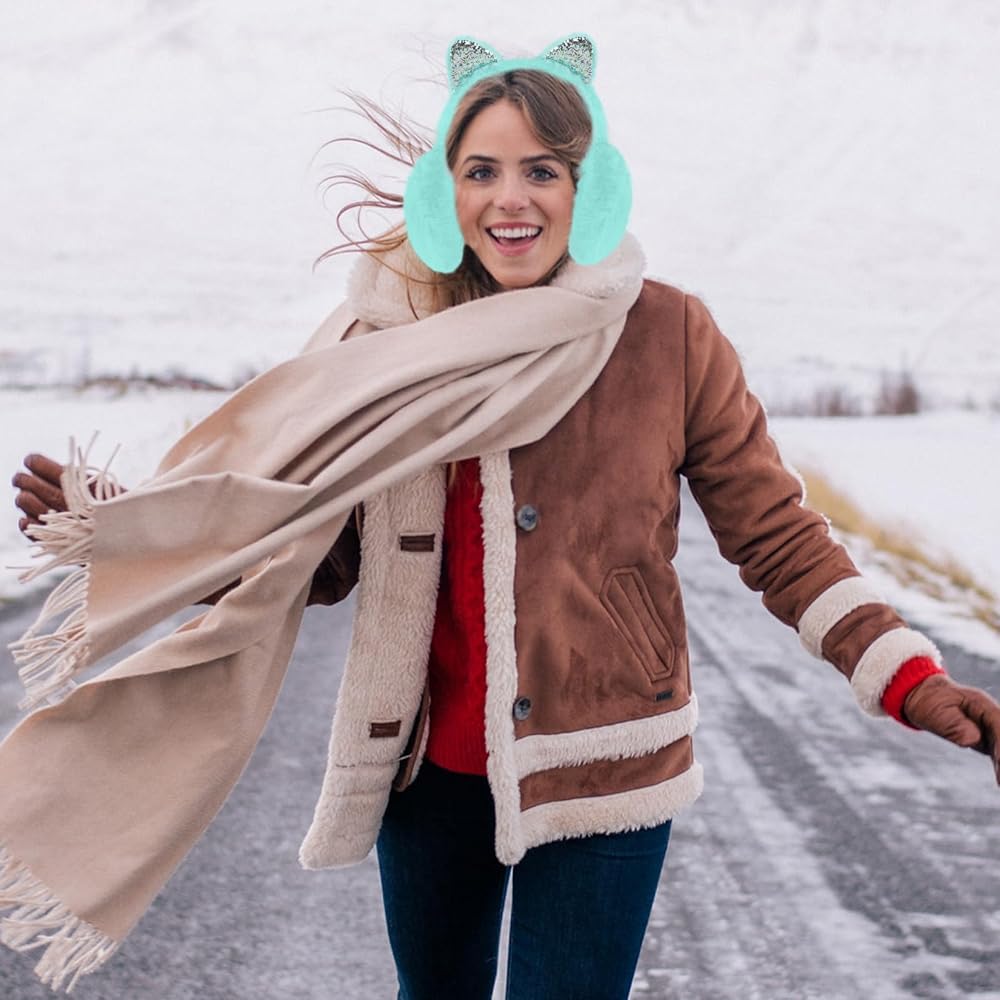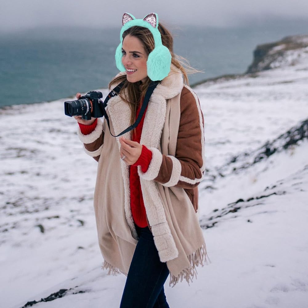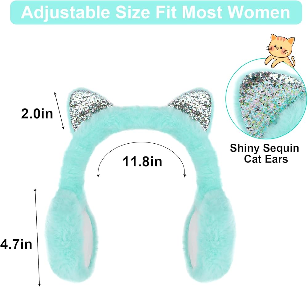 Cute Sequin Cat Ear Earmuff Women Plush Warm Ear Muff Soft Furry Outdoor Winter Ear Warmers Ear Cover Anti-Cold Ear Protector Earflap.