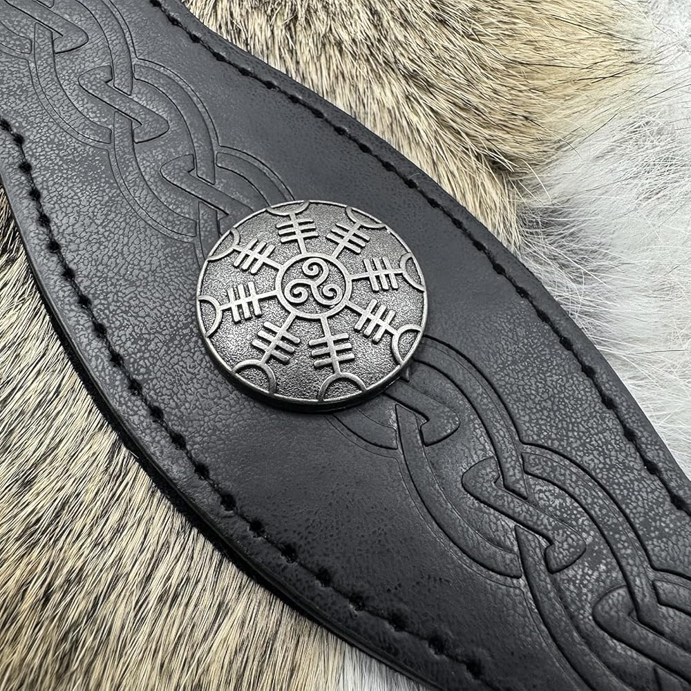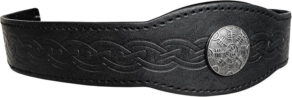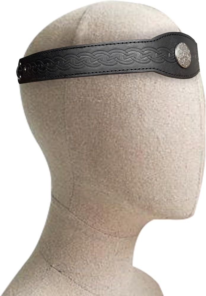 SUPER COOL DESIGN - It is a fine leather circlet with all of the appeal of a crown. A leather headband with a metal compass mounted on it. The leather band is embossed with classic celtic knot. The headband is held in place by lace at the back running through holes with metal