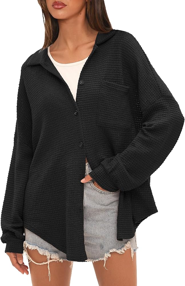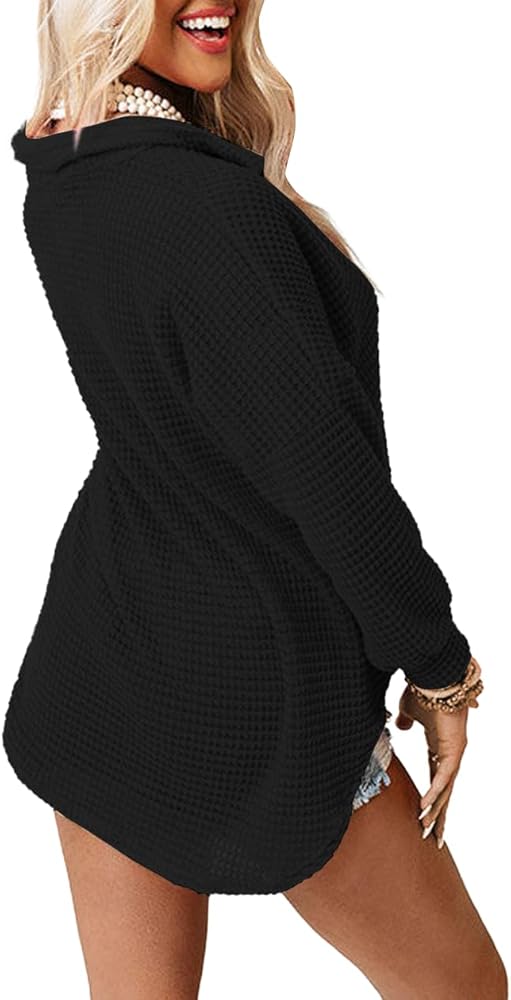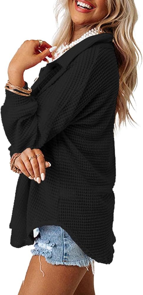 Material:This knit button down shirts for women featured in a soft waffle knit fabrication and loose silhouette,the skin-friendly,lightweight quality is comfortable to wear.