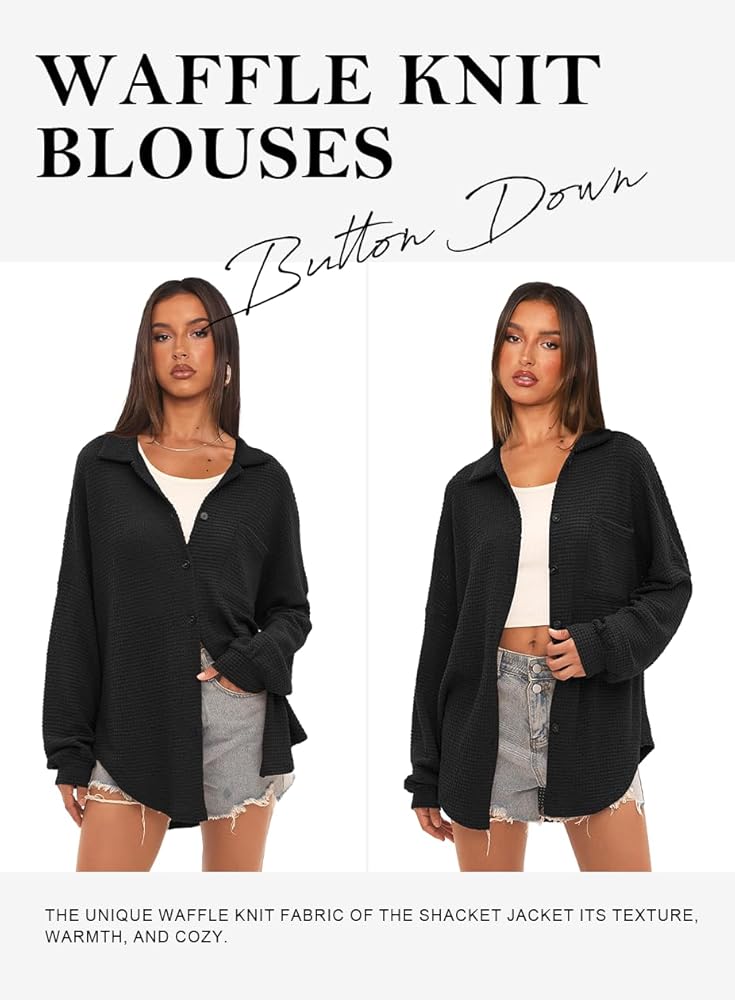 Waffle Knit Button Down Shirt: The unique waffle knit fabric of the shacket jacket its texture, warmth, and cozy. This fabric design making it stand out from traditional shirt jackets.The loose cut and boyfriend style of the shirts make it suitable for most figures.