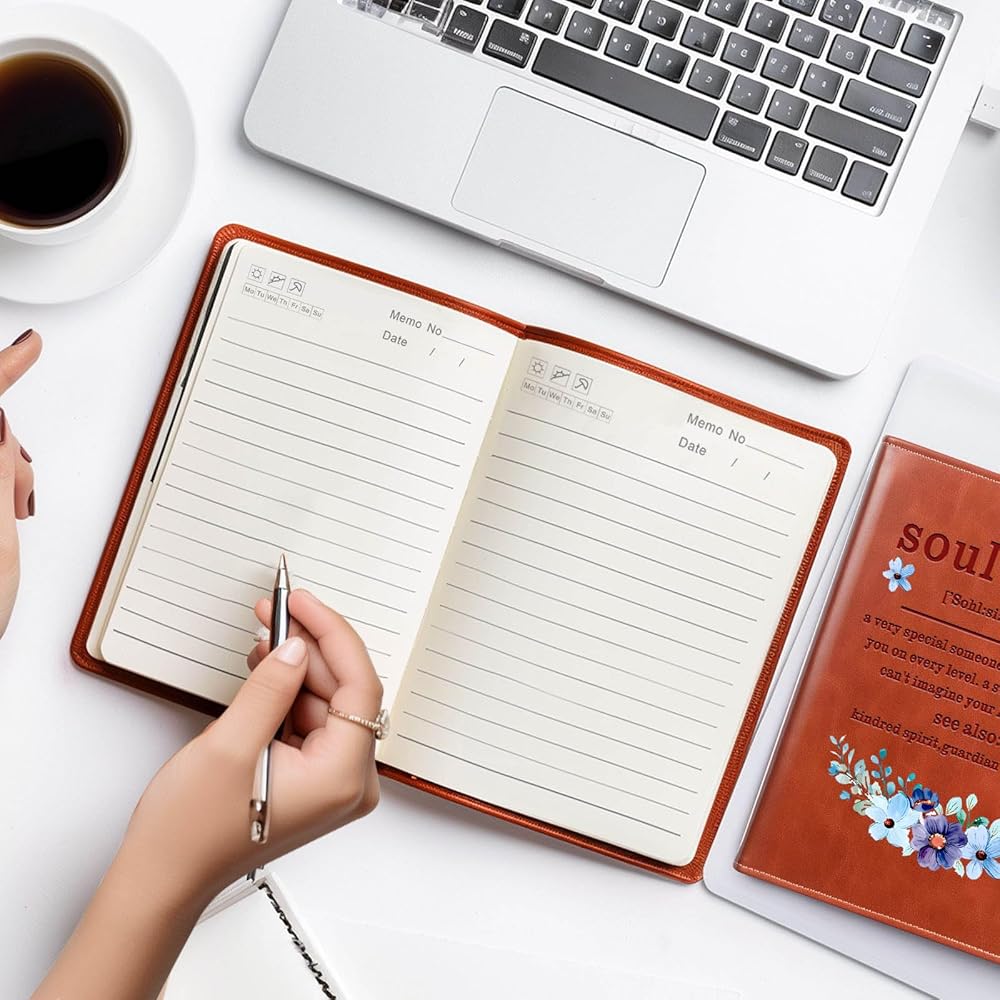 FAUX LEATHER COVER: The premium leather cover make the notebooks more durable and touched comfortably.It will protect your journals for years and easily to lay out flat for comfortable writing and reading. Each Journal Opens 180°for easy note taking and the spine will not break easily.