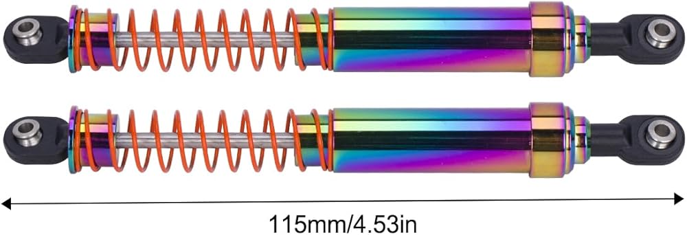 The shock absorber are electroplated in rainbow color with 2 springs of different hardness (Wire diameter:0.8mm & 0.9mm), and 2 Offset Shock Cap.