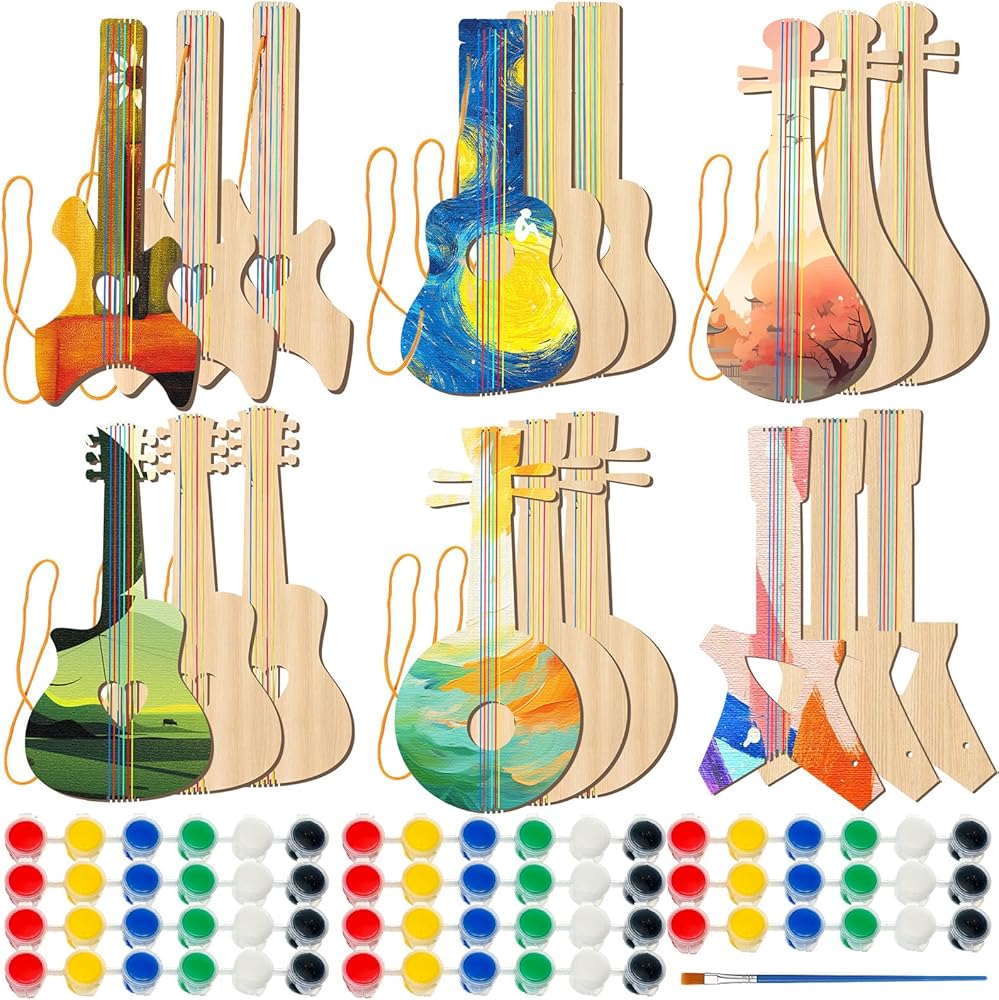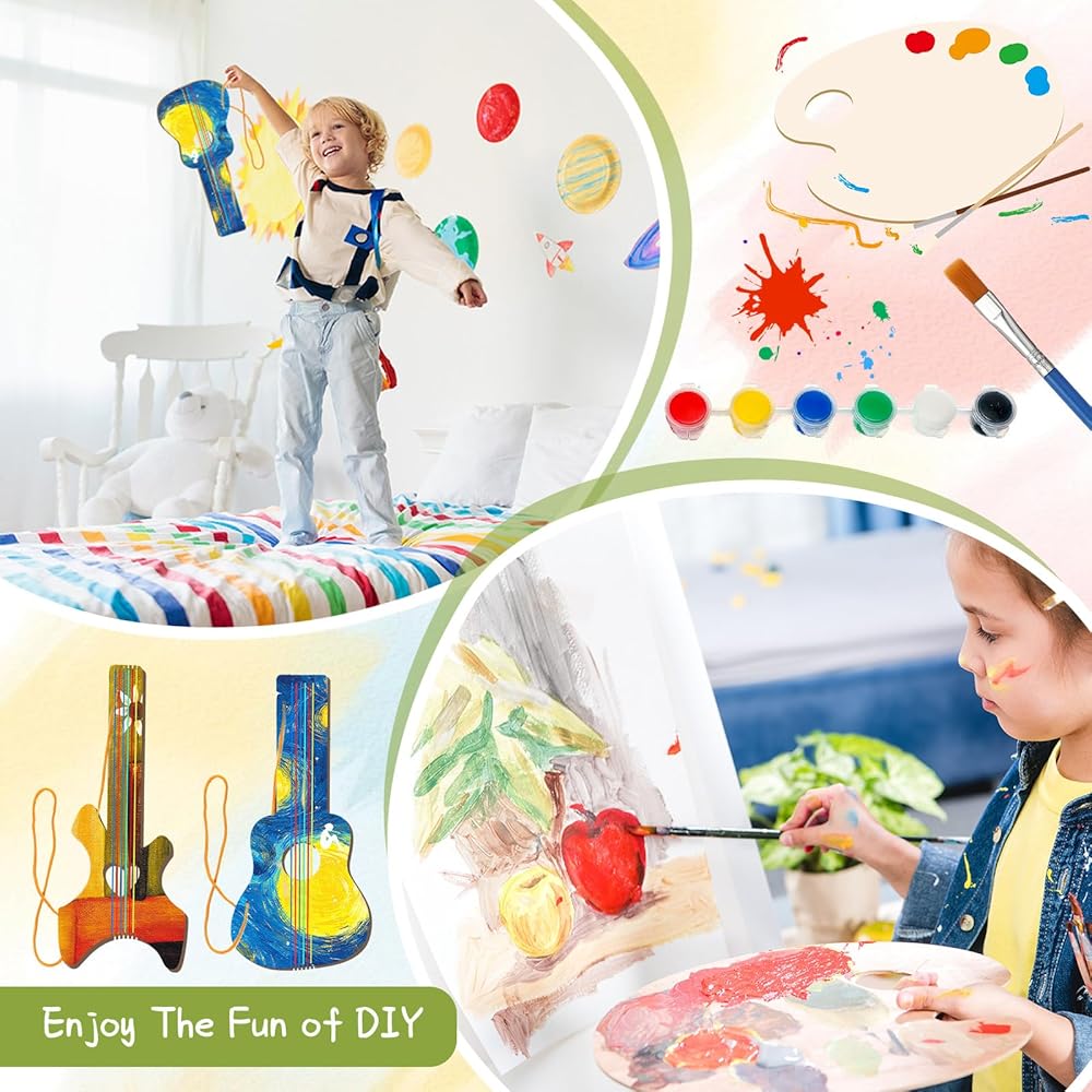 Attractive Design: the DIY wood guitars come in 6 different shapes and designs that are visually appealing and attractive; The designs are delicate and stylish, making them suitable for most occasions and parties; The guitars have a smooth surface that's easy to paint on, allowing little ones to create their own designs; The pigments with paintbrushes come in a variety of colors that can be mixed and matched to create different shades and hues