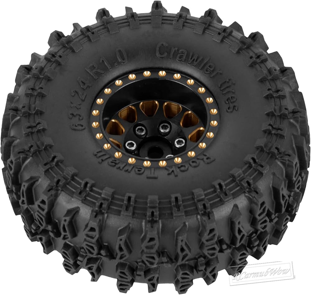 【High-quality Material】:The rc 1.0 Beadlock Rims Set is made of high-quality Brass,precision machining, light weight and durable, increasing crash resistance and long-lasting durability.Standard lining sponge with reinforcement design enhances tire support and stability.Multi-curve tread sipe improves the grip on loose soil and wet road.