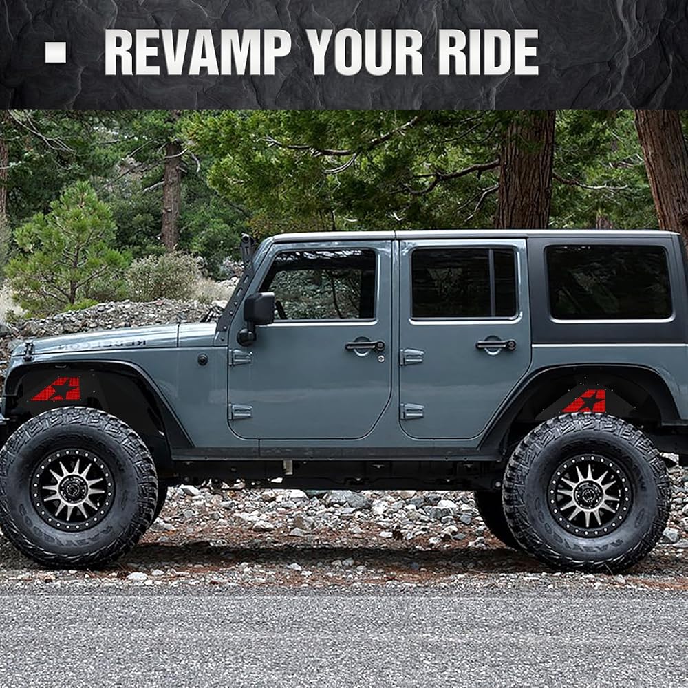 Front & Rear Inner Fender Liners Compatible with 2007-2018 Jeep Wrangler JK & JKU Unlimited (2/4 Doors), Slanted Red Star Style Mud Guards Steel Wheel Well Cover Fenders Flares