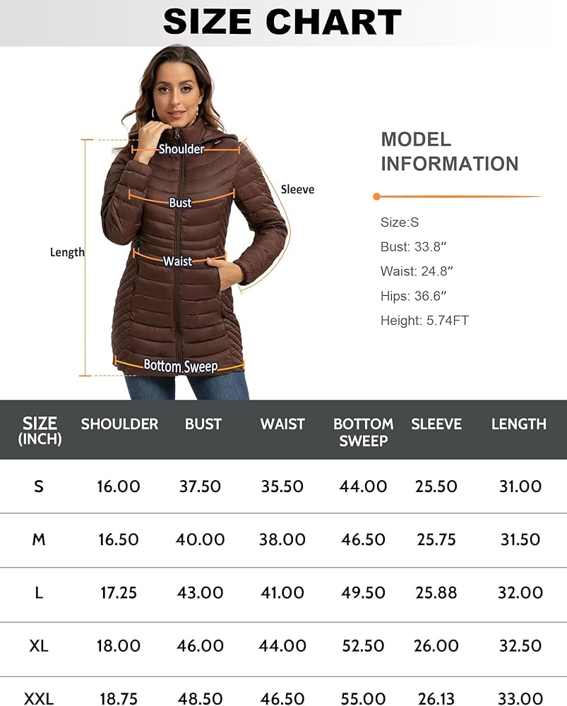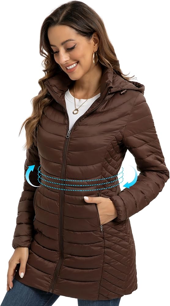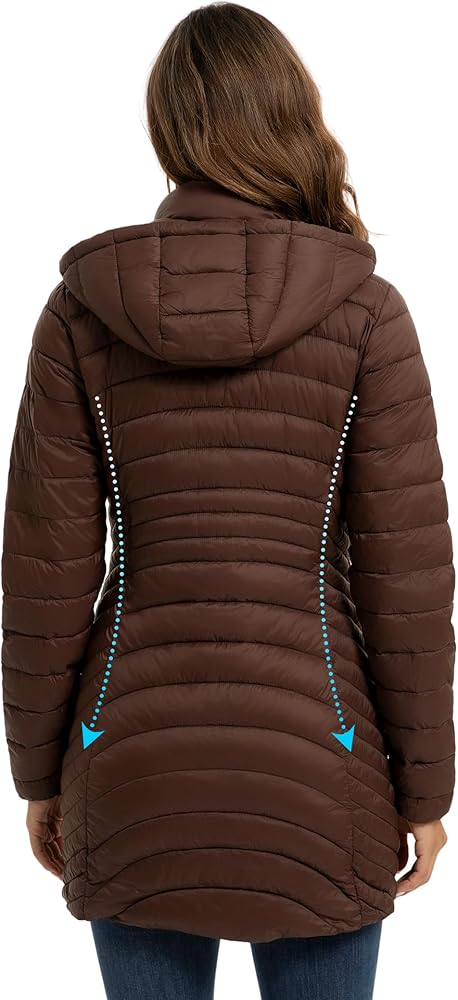Flattering Fit with Convenient Storage: This long travel puffer jacket features 2 side panel stitching to accentuate your beauty. Appropriate length to cover hips and thighs, while the convenient interior and exterior pockets allow you to carry your essentials with ease