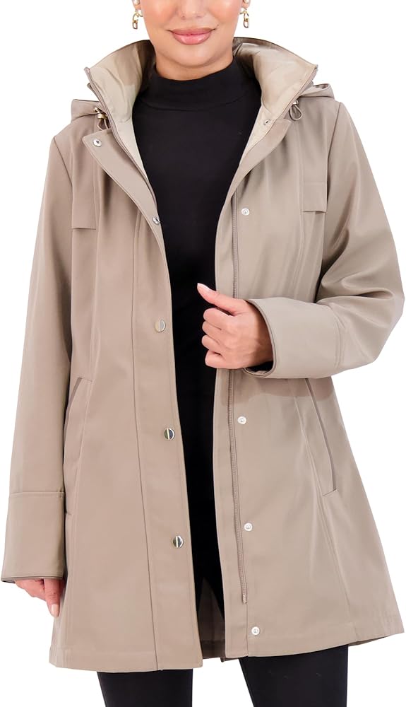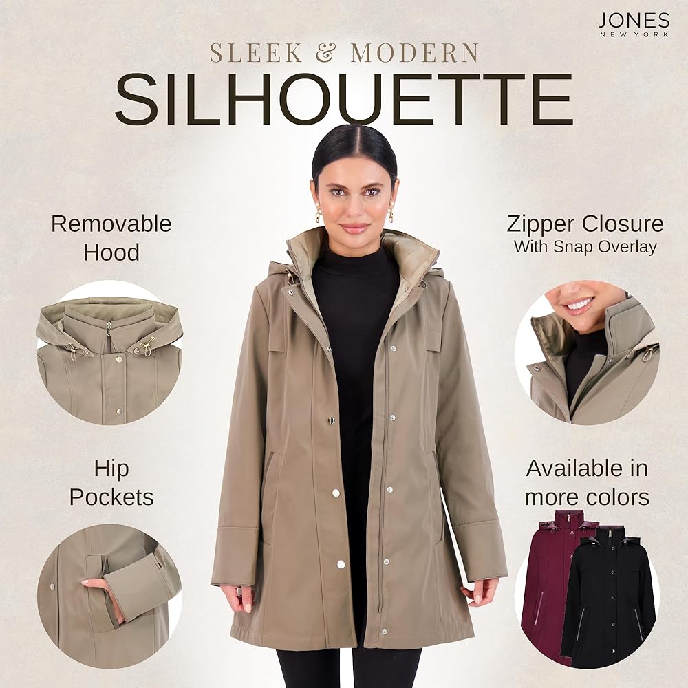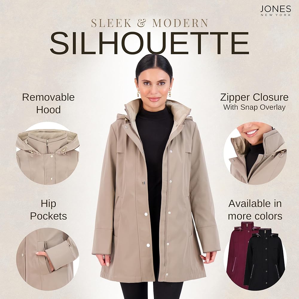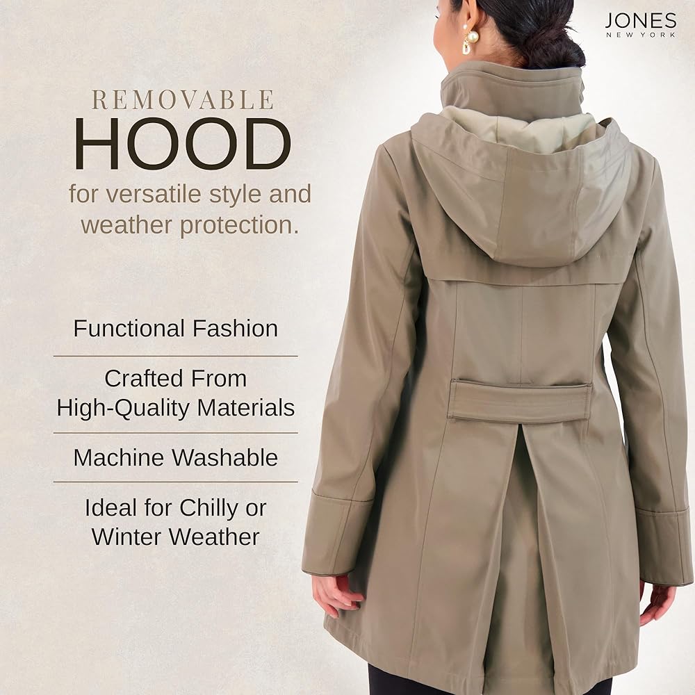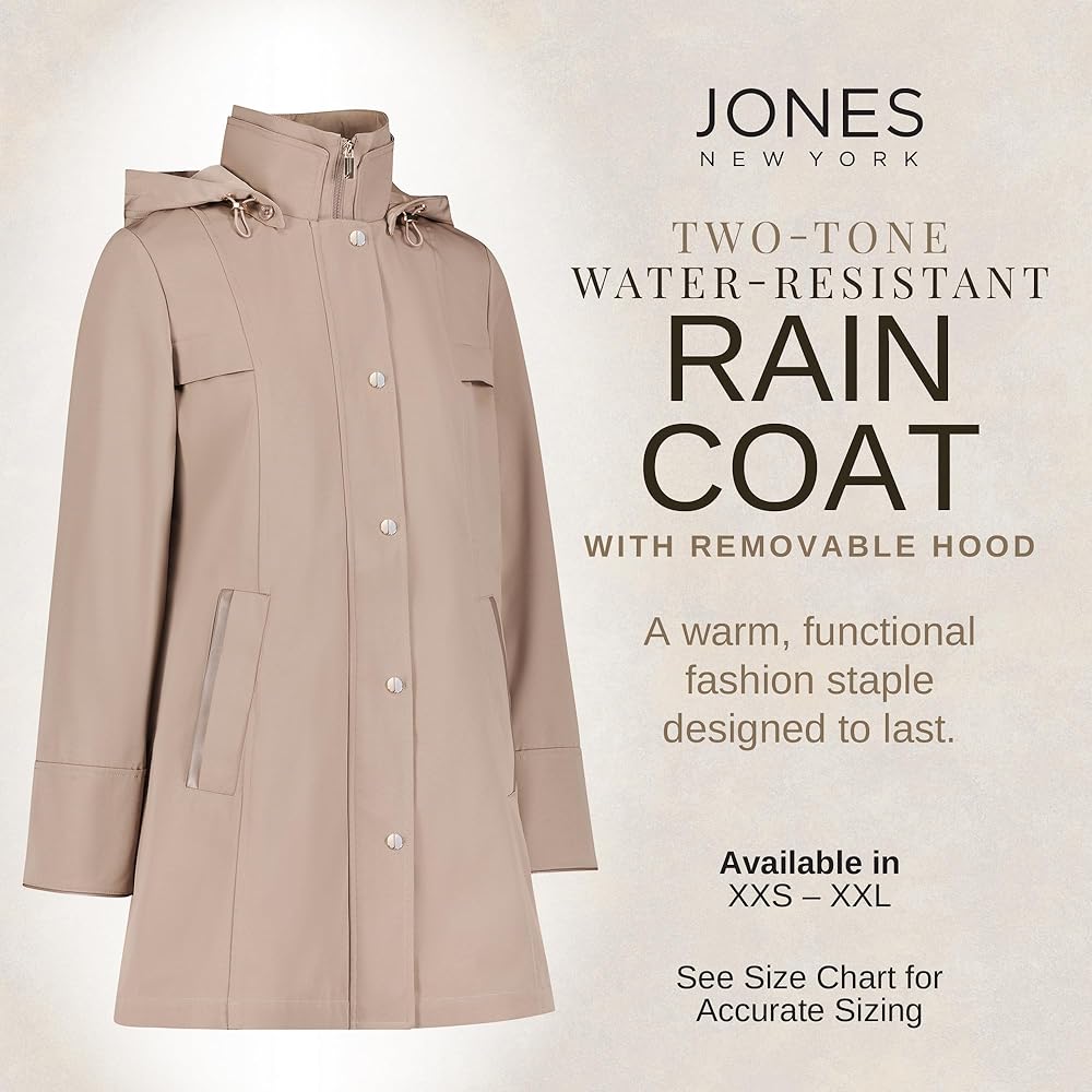 Stay stylish and protected with the Jones New York Two-Tone Coat, a perfect blend of fashion and functionality. Available in Black/Taupe, Wine, and Desert/Stone, this coat is designed to keep you comfortable while offering a chic, polished look. The removable, adjustable hood provides versatility, while the tab at the back waist helps to define your silhouette.