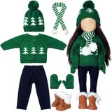 Doll Clothes Set: you will receive 1 set of girls doll clothes You will receive 1 set of doll clothing including a jacket, vest, pants, hat, high boots, which can be worn for 18 inch dolls; Beautiful patterns and costumes in Christmas colors will make your doll stand out