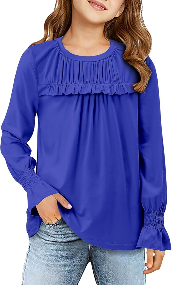 Design: Round neck, long sleeve, ruffle flap design on the chest, smocked cuff, flowy style. With its charming design, your sweet girl will love to wear it