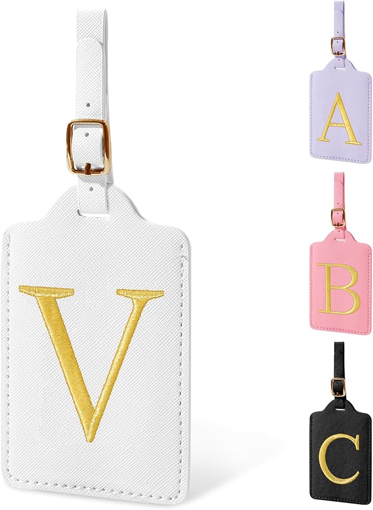 ✈【Embroidered Initials Luggage Tag】Cute exquisite A-Z personalized luggage tag for suitcases with gold border glitter embroidered letter patch, the letters are made from carefully stitched gold-colored thread.Firmly sewn to the tag, you don't have to worry about them falling off. Bright gold letters and vibrant luggage tag colors to help your suitcases be more easily recognizable at baggage claim.Monogram travel tags make your luggage more personal.
