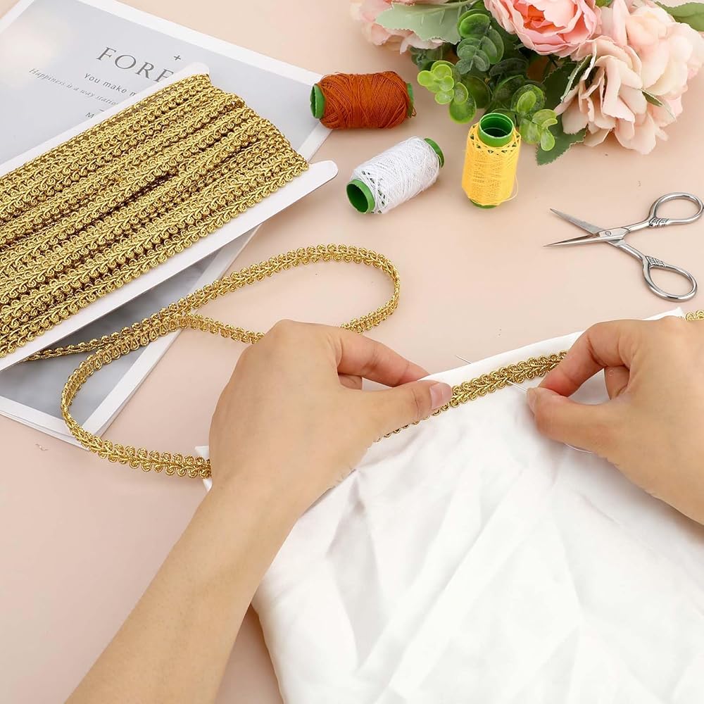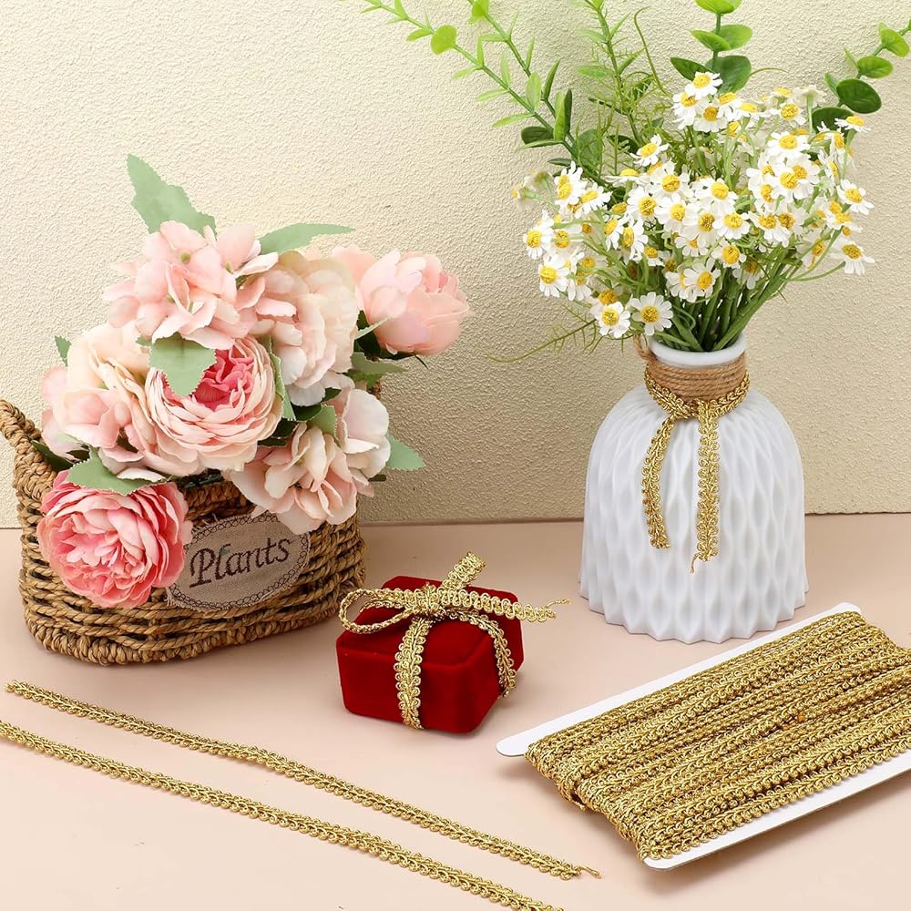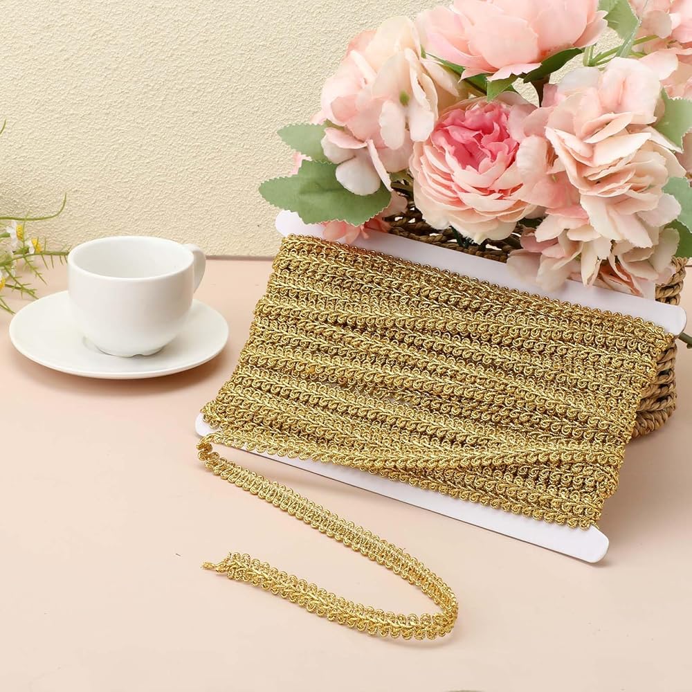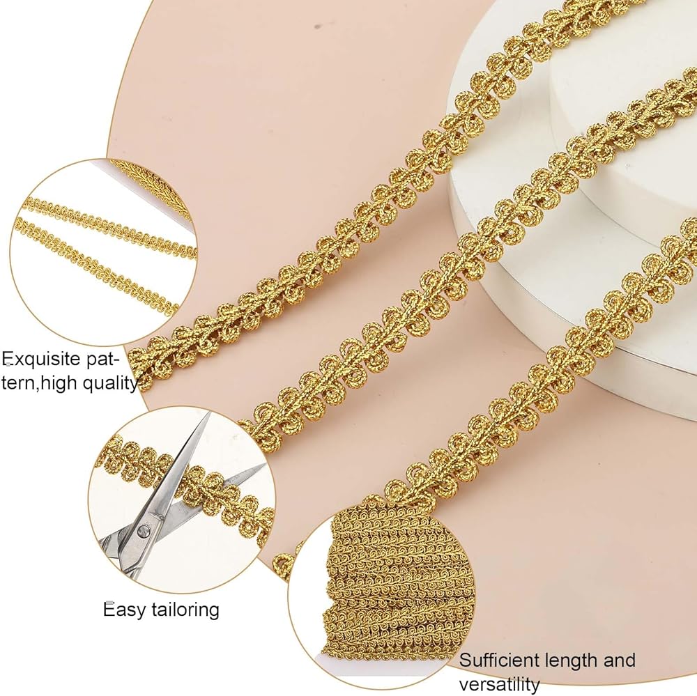 【Package Included】You will receive fabric trim made of polyester fiber, which is 14 yards/13.5m gold metal lace, with a width of about 3/8 inch/10mm and a thickness of 2.5mm. The size is enough to meet your daily decoration.
