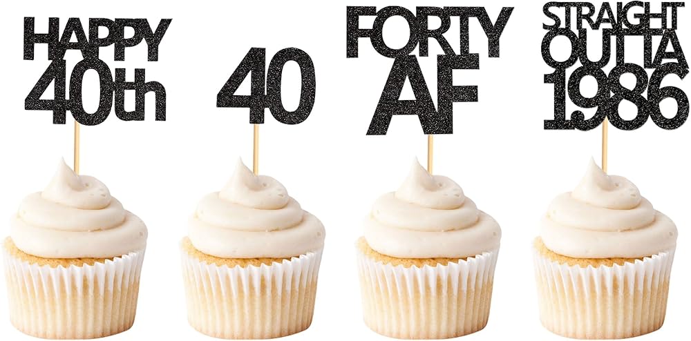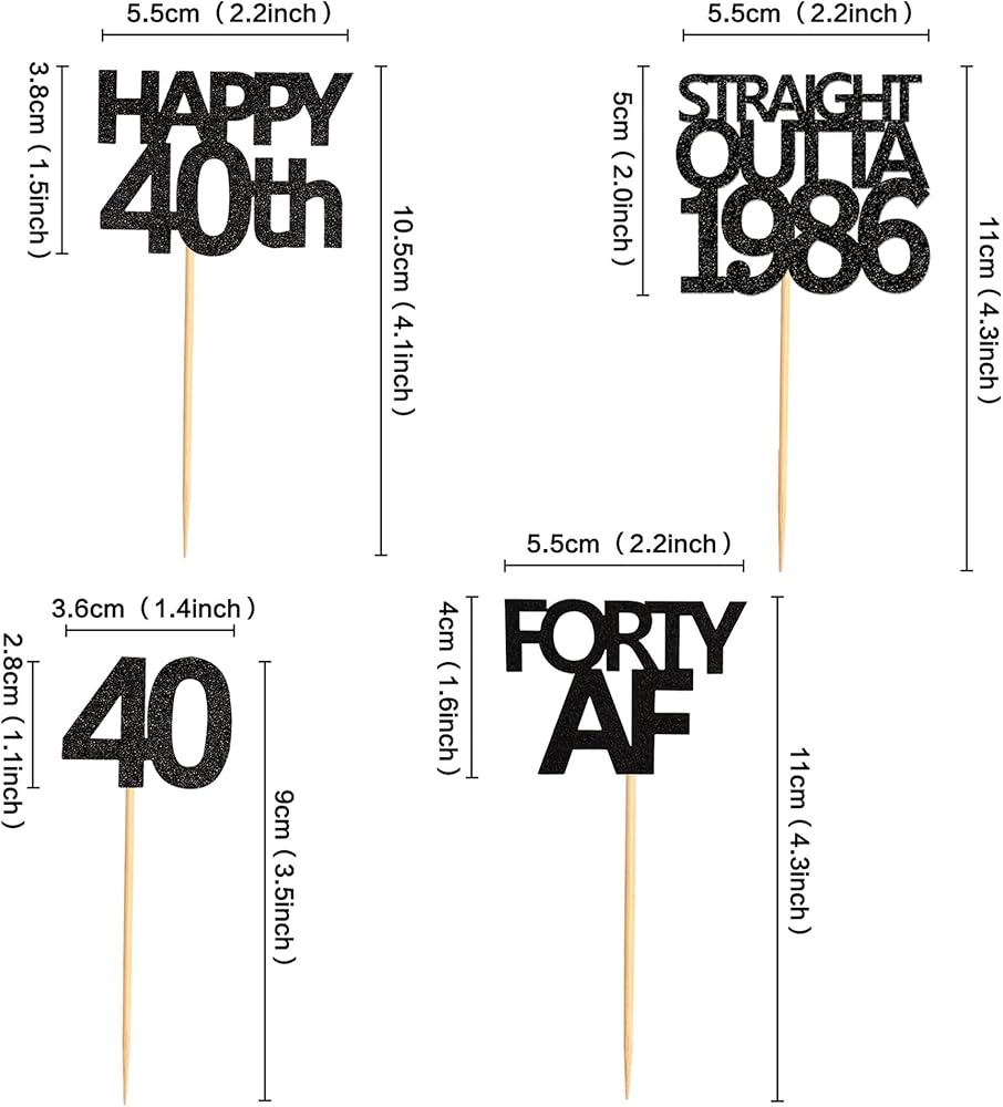 48Pcs Black Happy 40th Cupcake Toppers Straight Outta 1986 Number 40 Cupcake Picks for Men Women 40th Funny Birthday Cupcake Decoration 40th Wedding Anniversary Party Decors