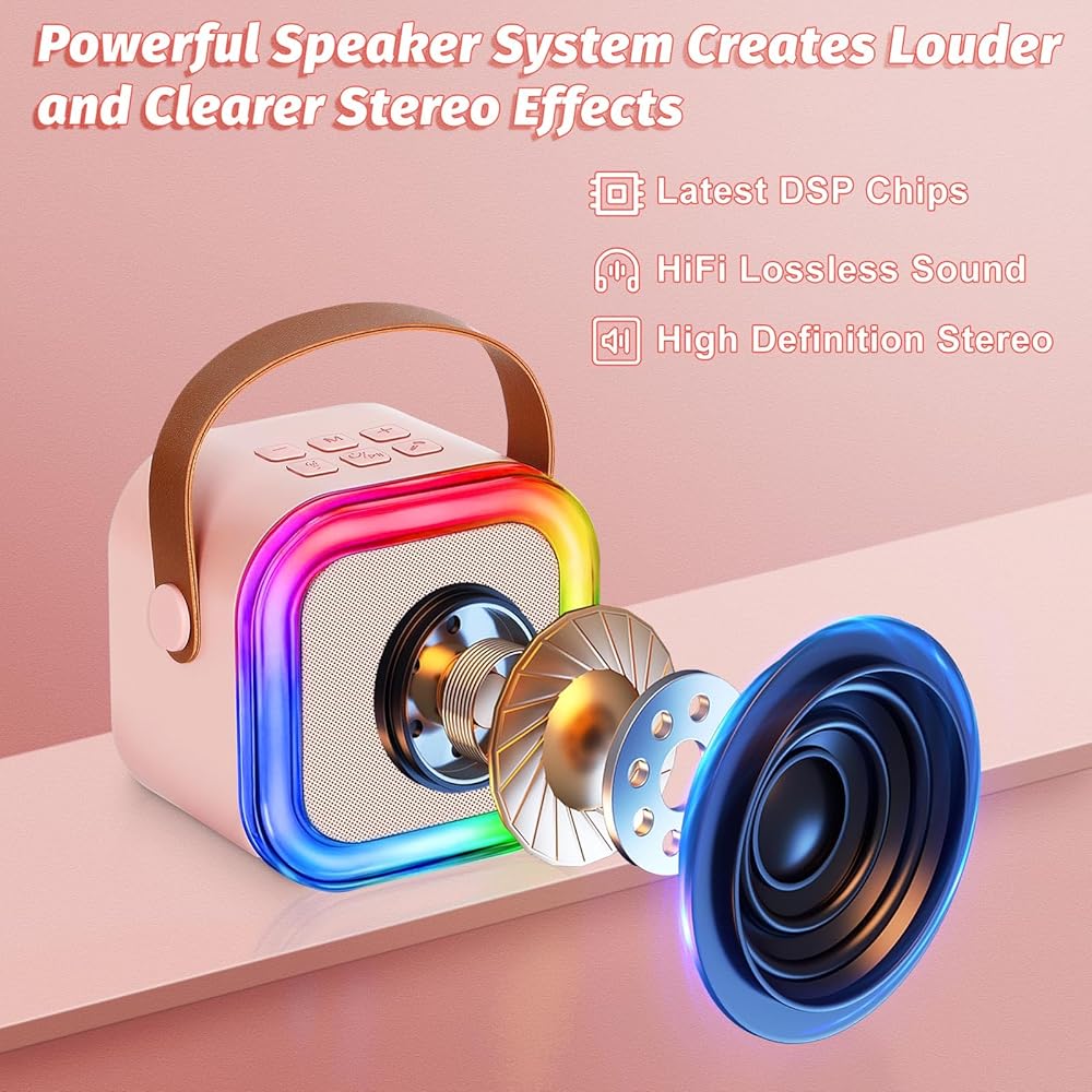 【Bluetooth Microphone】 - This kids karaoke machine with Bluetooth 5.3 technology ensures instant pairing and automatically stabilizes the connection at startup, perfect for parties and gatherings, compact but powerful and loud.