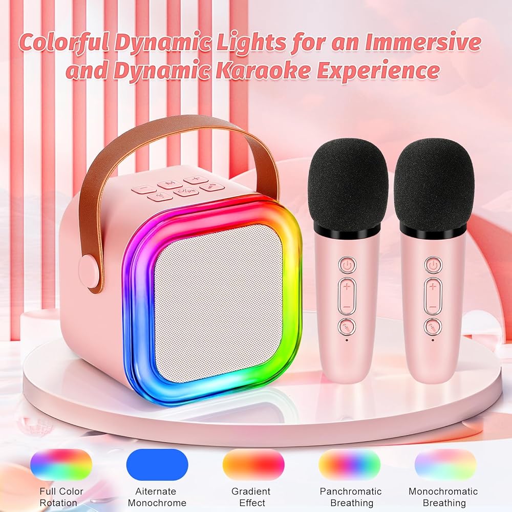 【Colorful Dynamic Lights】 - This portable karaoke machine with 2 microphones features fun LED lighting effects and several different colors to choose from, allowing you to enjoy an immersive and dynamic karaoke experience wherever you are.
