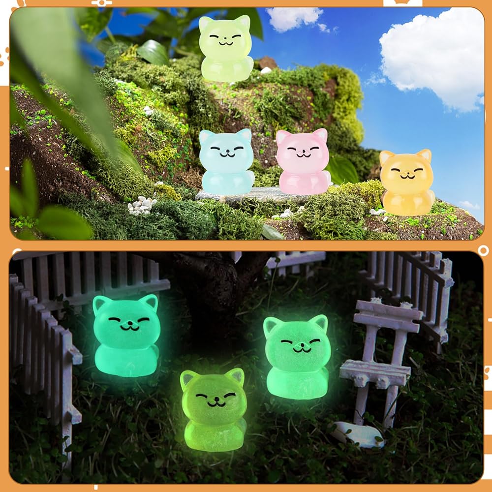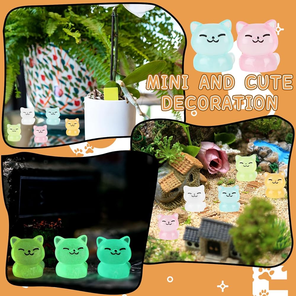 Value Package: You will get 60 luminous miniature cat figurines in 5 colors including milky white, pink, orange, blue, and green. , enough quantity to meet your diverse needs for decorate dollhouse, micro landscape garden or as DIY craft accessories