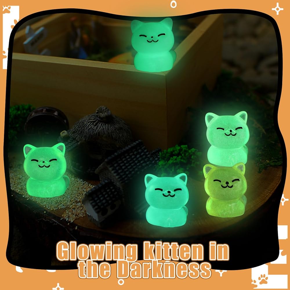 Specially Designed: These mini resin cats cast with luminous designs embellish many environments. They can light up the atmosphere through joyful activities during the day and night. Please note that these tiny animal statues absorb enough light, so they can sparkle in the darkness