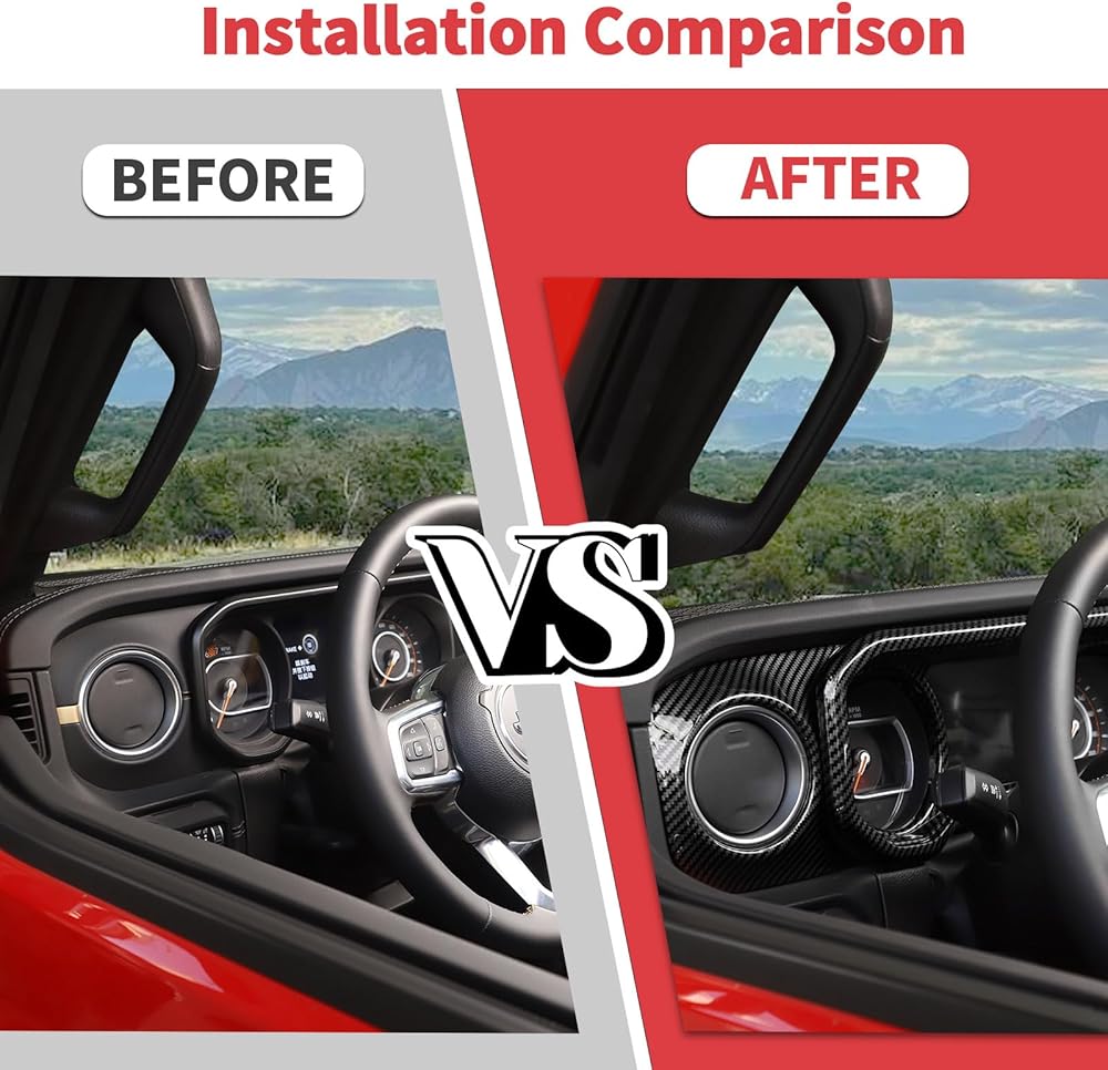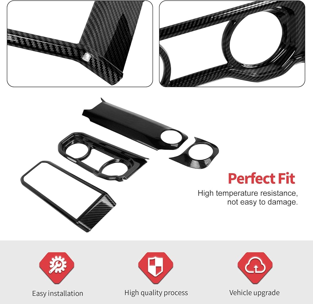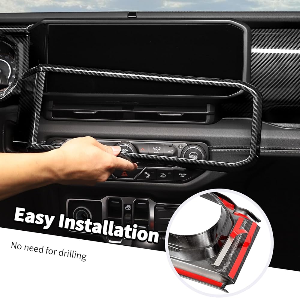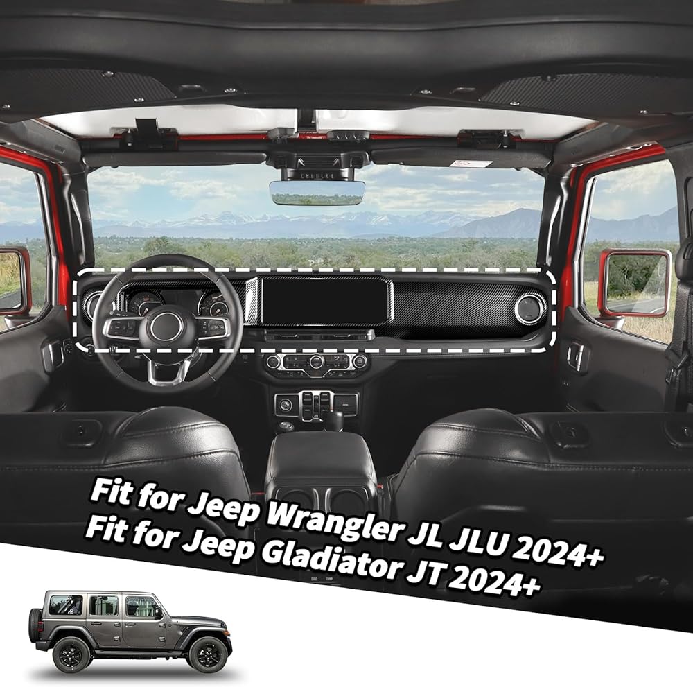 Jimen Fit for Jeep Wrangler JL JLU & Gladiator JT 2024-2025, 4PCS Center Console Dash Trim & Dashboard Cover Navigation Panel Interior Overlay (Carbon Fiber)