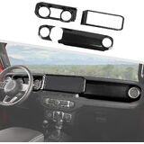 Jimen Fit for Jeep Wrangler JL JLU & Gladiator JT 2024-2025, 4PCS Center Console Dash Trim & Dashboard Cover Navigation Panel Interior Overlay