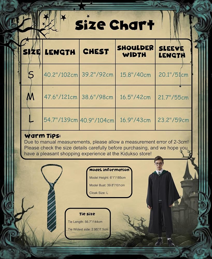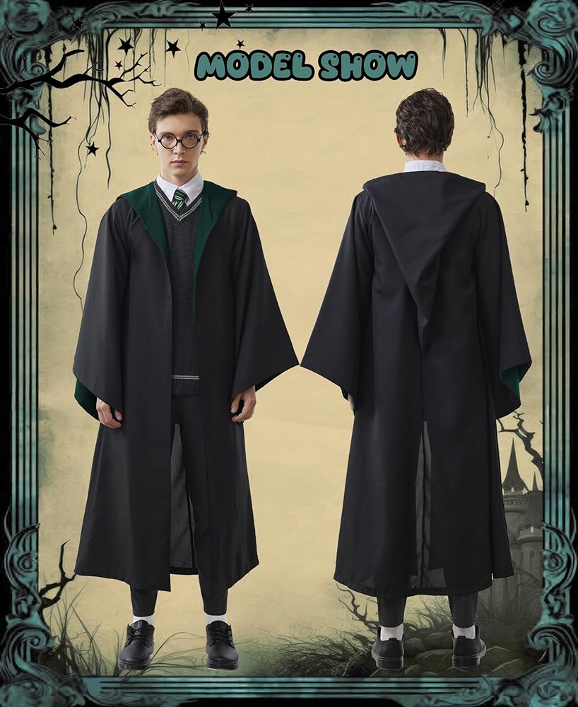 Kidukso Wizard Robe Adult Wizard Cloak with Tie Unisex Wizard Costume Hooded Uniform Magical Witch Robe Cloak Cape Halloween Cosplay Costume