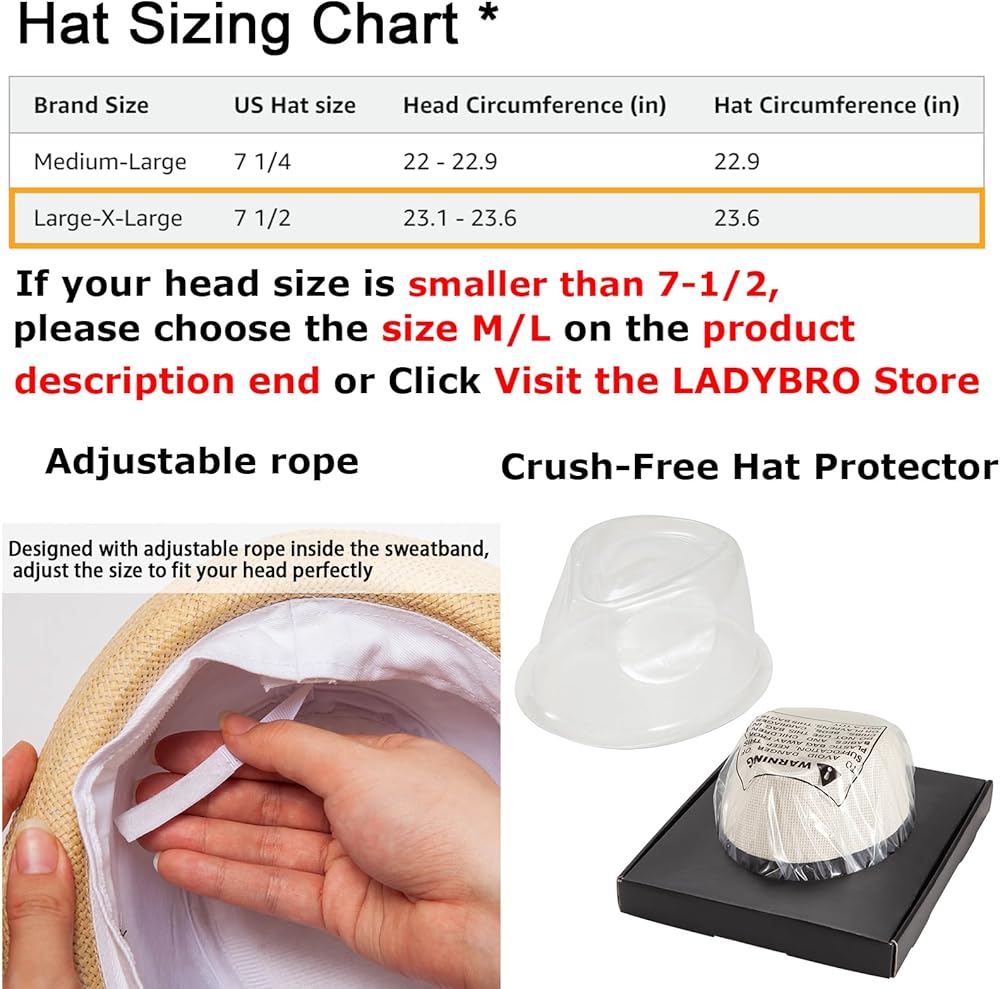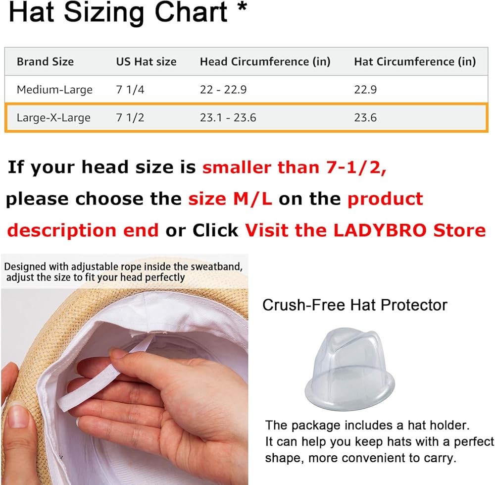 【ONE HAT, THREE LOOKS】Size XL fits head circumference 23 1/8"-23 5/8", US Hat Size 7 3/8, 7 1/2. Design with an adjustable rope inside the sweatband, allowing you to customize the fit and ensure a comfortable feel. It also comes with decorative elements to create three unique fashion looks.